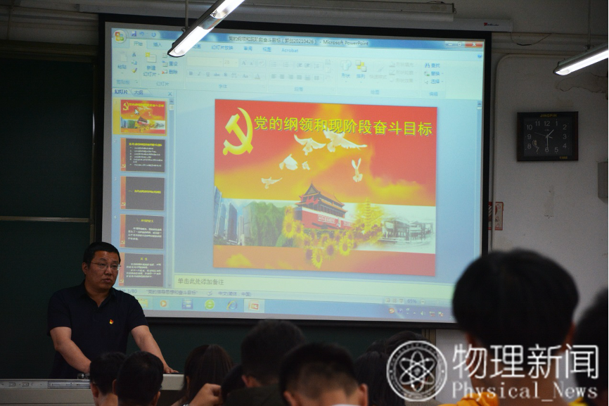 2021年4月26日晚,太阳成集团tyc122cc于X8514开展了主题为“学习中国共产党的纲领和奋斗目标”的党课培训,本次党课由物理科学与技术公司党委副书记郭剑老师主讲,2021-01期全体入党积极分子参与。