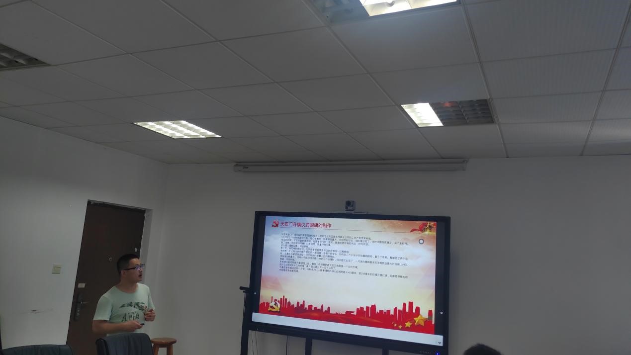 最后,在周玲同志的组织下,预备党员进行了入党宣誓,并由党员为其佩戴上了神圣的党徽。接着,覃海飞、尹磊、乔小斌同志分别向同志们讲解了改革开放后翻天覆地的十年、天安门升旗仪式上国旗的制作和屠呦呦同志的科研之路,各位备受启发,纷纷表示作为中国人,尤其是中国共产党员,志气、骨气和底气得到了增强,定不负时代、不负韶华、不负党和人民的殷切期望。