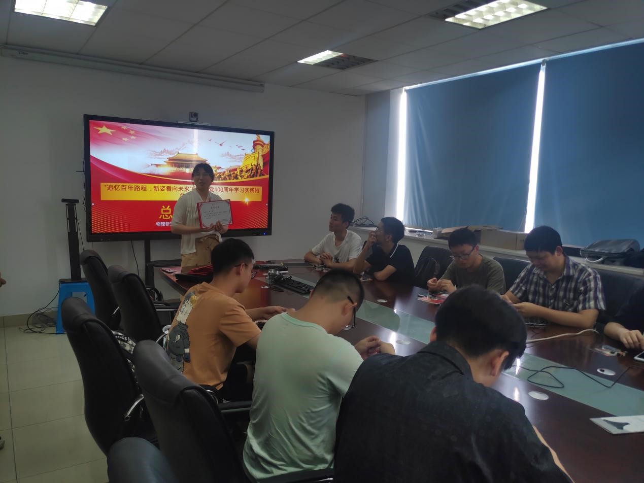 其次,为庆祝中国共产党成立100周年,周玲同志和张润午同志代表太阳成集团tyc122cc三党支部给所有党员分发U盘、贺卡等纪念品,并鼓励每位同志坚持理想,践行初心,担当使命,刻苦科研,为实现中华民族伟大复兴的中国梦不懈奋斗。
