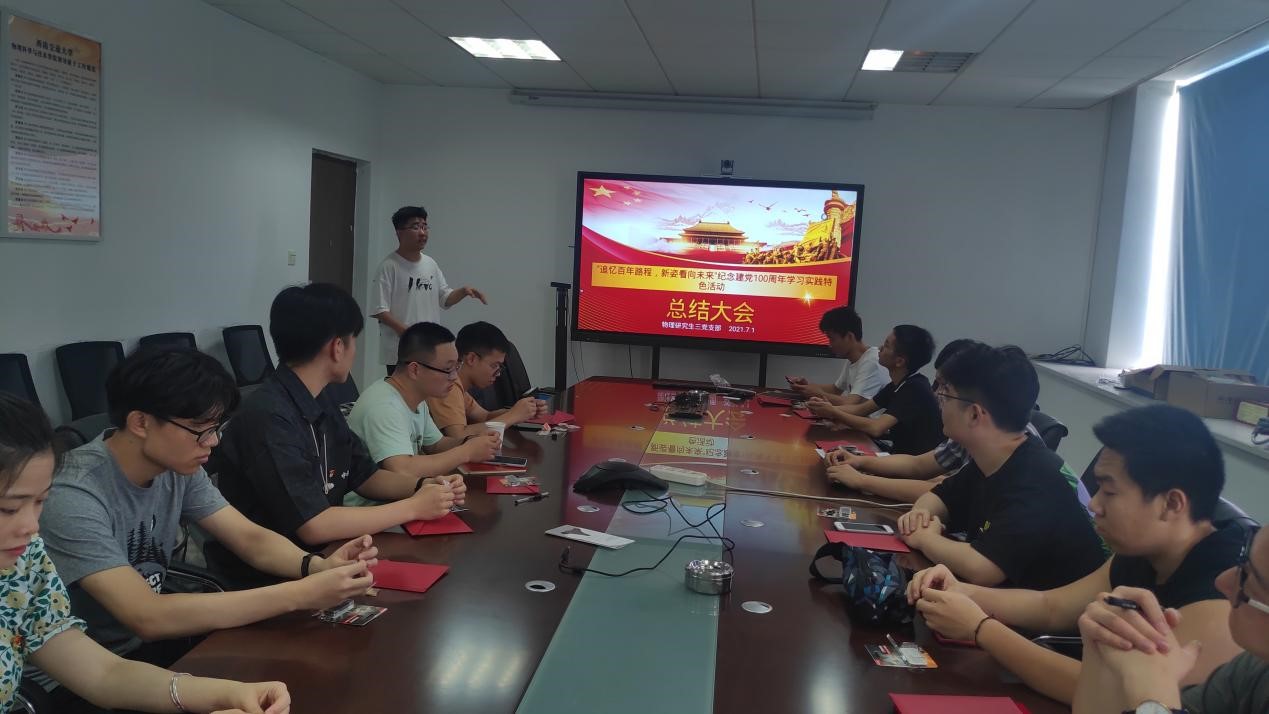 2021年7月1日下午16:00,太阳成集团tyc122cc研究生三党支部于犀浦校区5527举办“追忆百年路程,新姿看向未来”庆祝建党100周年学习实践总结大会暨“迎党的生日,讲初心故事,悟红色使命”主题党日活动。活动由党支部书记周玲同志主持,研究生三党支部全体成员参加此次活动。