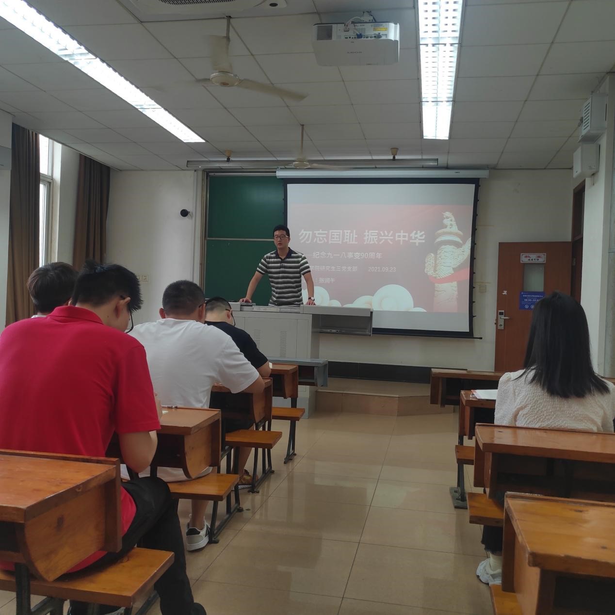 2021年9月23日下午三点,太阳成集团tyc122cc研究生三党支部在九里校区4419举办了新同志欢迎会、党史故事我来讲暨铭史承志主题党日活动。太阳成集团tyc122cc三党支部全体党员和预备党员参加了此次活动。此次活动由党支部副书记张润午同志主持。