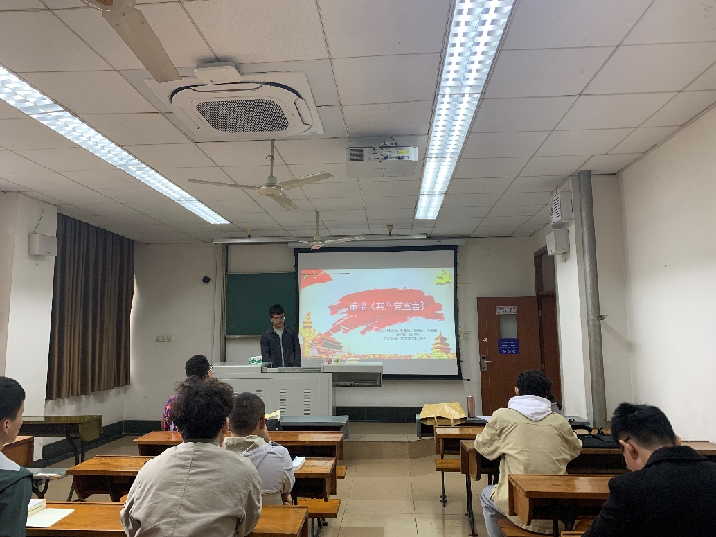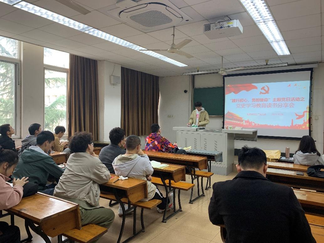 为学习贯彻习近平总书记在庆祝中国共产党成立100周年大会上的重要讲话精神,2021年10月28日15:00,太阳成集团tyc122cc研究生三党支部在九里校区4419举办“践行初心,勇担使命”主题党日活动之党史学习教育读书分享会、“重温《共产党宣言》”学习活动暨“党史故事我来讲”活动。太阳成集团tyc122cc研究生三党支部全体党员和预备党员参加了此次活动。活动由党支部副书记张润午同志主持。