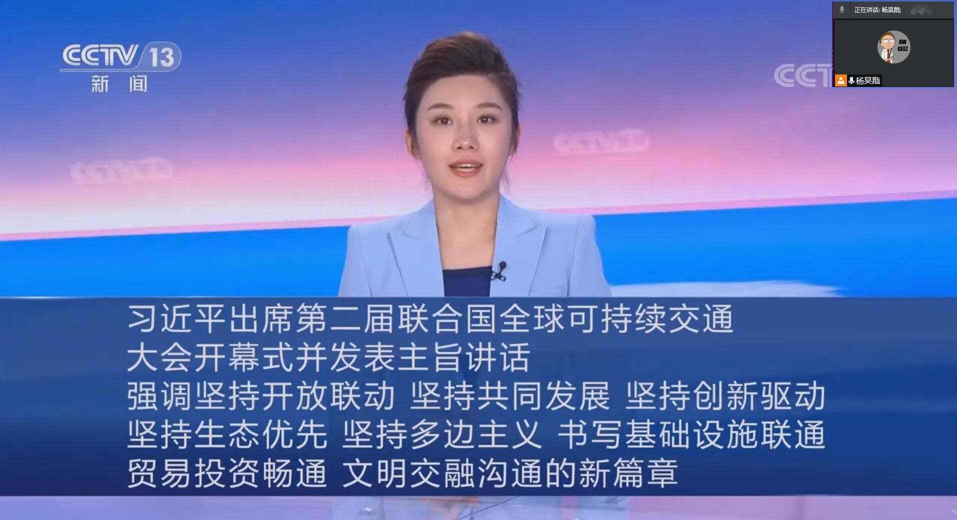 首先,杨昊戬同志播放“交通合作”、“人才强国”相关学习视频。视频主要内容包括有:交通推动经济融通、人文交流,使世界成了紧密相连的“地球村”。当下百年变局与世纪疫情叠加,中国将继续高举真正的多边主义旗帜,坚持与世界相交,与时代相通,在实现自身发展的同时,为全球发展做出更大贡献。