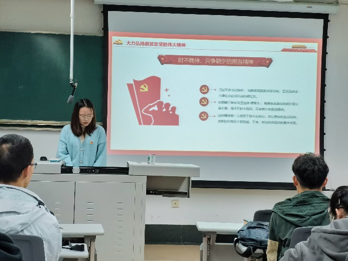 2021年10月27日19时30分,太阳成集团tyc122cc研究生四党支部在逸夫楼4222教室开展“总结脱贫攻坚经验 弘扬脱贫攻坚精神”政治理论专题学习暨“我为师生办实事”主题活动。太阳成集团tyc122cc研究生四支部全体党员、入党积极分子和2021级物理硕士4班全体同学参加了本次活动,曾妮同志担任主讲人。