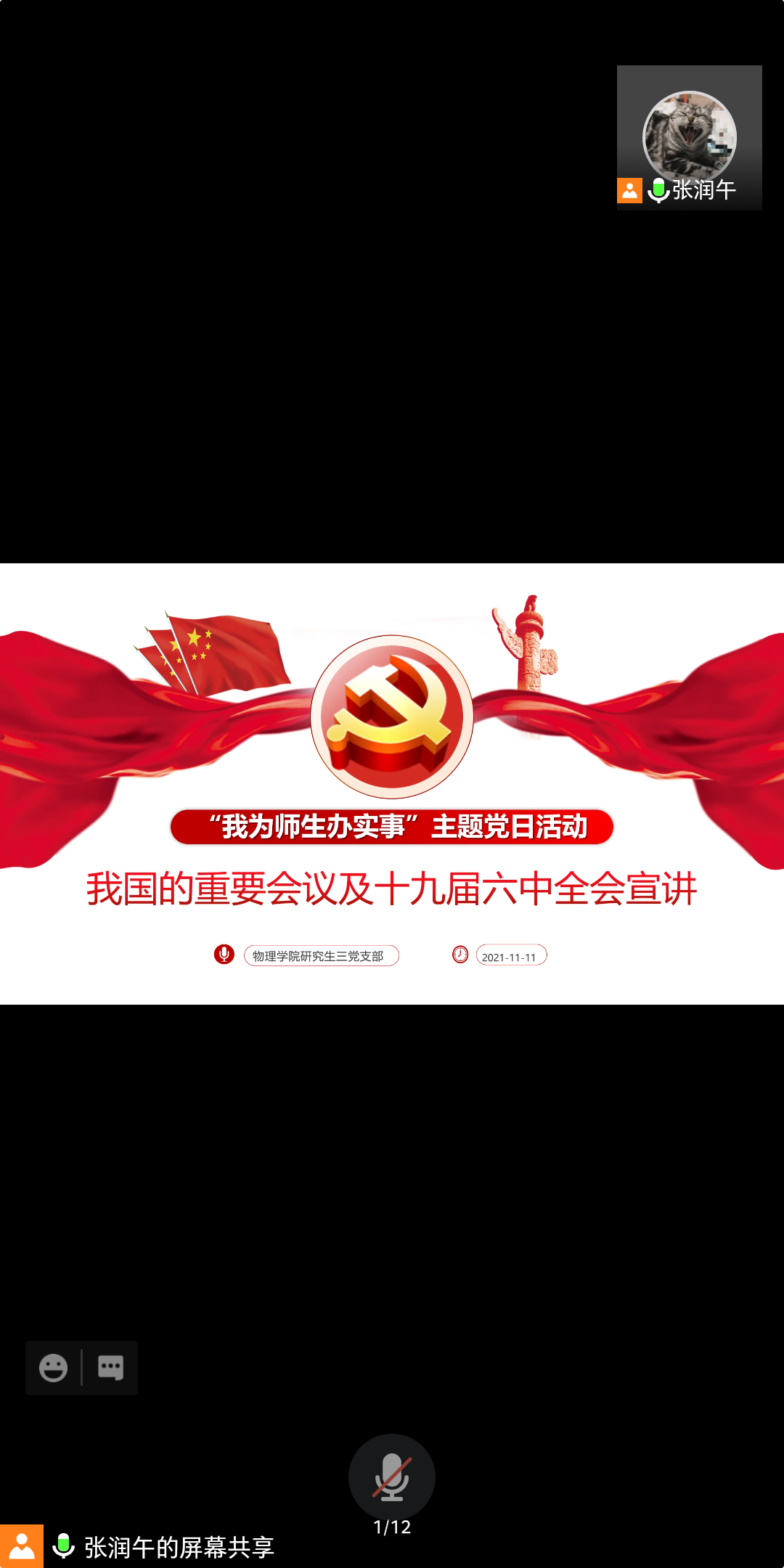 2021年11月11日14:00,太阳成集团tyc122cc研究生三党支部于线上开展“我为师生办实事”主题党日活动暨党课专题培训。活动由党支部副书记张润午同志主持,太阳成集团tyc122cc研究生三党支部全体党员、发展对象、入党积极分子和物理硕士2021级三班共青团员参与了此次活动。