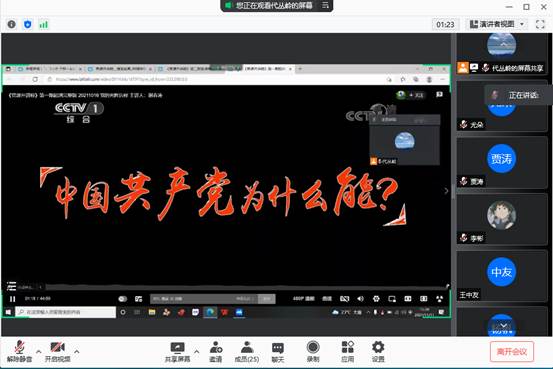 2021年11月11日下午3点半,物理研究生二党支部开展建党一百周年专题党史学习,本次会议采取线上方式通过腾讯会议平台举行,由代丛岭同志担任主讲人,支部党员、发展对象和积极分子参与活动。