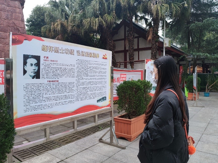 首先,支部书记门满洲同志引导支部同志学习十二桥烈士墓的历史。5块事迹栏,共记录了20位烈士的事迹,其中有13位年龄在35岁以下,最小的龙世正只有19岁,最年长的周从化也只53岁。根据事迹栏的记录:周从化是在重庆解放前三天的1949年11月27日夜里,被特务枪杀于重庆白公馆松林坡上,后遗体被转运回成都十二桥。彭代悌、云龙是被杀害于成都王建墓墓道,于1950年1月遗体被送往十二桥烈士墓安葬。其他17位烈士则都是牺牲于1949年12月7日夜的十二桥防空隧道内,距离成都和平解放还有20天的黎明前夜。