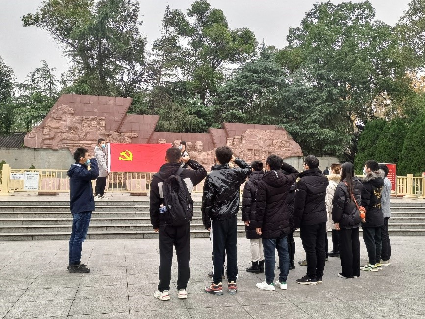 2021年11月28日上午10:00,中共太阳成集团tyc122cc研究生一党支部赴十二桥烈士墓开展“献礼建党百年,凝聚青春力量”学习实践活动。物理研究生一党支部书记门满洲、党支部副书记杨昊戬、宣传委员方茜、组织委员李江伟、学习委员崔子麟及支部党员、支部党员发展对象参加了本次实践活动。