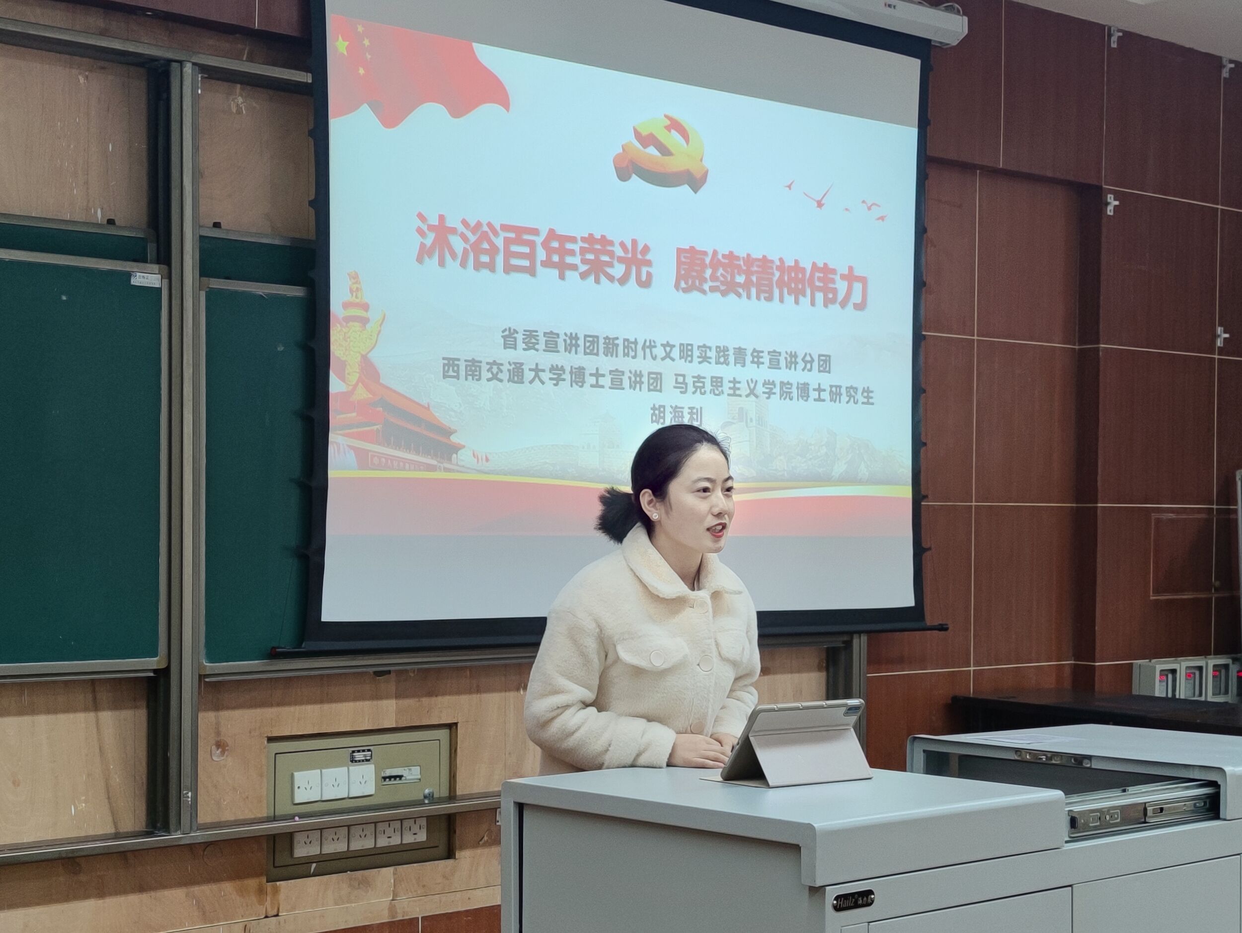 为扎实推进党史学习教育,学习党的十九届六中全会精神,在党史中汲取奋进力量。2022年1月6日下午14:30,省委宣讲团新时代文明实践青年宣讲分团、太阳成集团tyc122cc博士宣讲团成员胡海利同志应邀为太阳成集团tyc122cc研究生党员开展“沐浴百年荣光,赓续精神伟力”主题党课,太阳成集团tyc122cc研究生第一、第二、第三、第四党支部全体党员、研究生辅导员杨昊戬老师参会。会议由太阳成集团tyc122cc研究生第二党支部指导老师龚高秦主持。