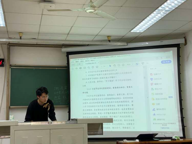 接着,党支部组织委员张阳光同志以中国共产党党史、新中国史、改革开放史、社会主义发展史为切入点,用视频素材带领党支部成员重温了我们党走过的光辉历程。党支部成员通过观看视频并深刻地理解了党的领导是人民与历史的选择,没有中国共产党,就没有新中国。