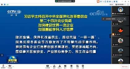 全系同志集体观看视频新闻“习近平主持召开中央全面深化改革委员会第二十四次会议强调——加快建设世界一流企业,加强基础学科人才培养”。要走好基础学科人才自主培养之路,坚持面向世界科技前沿、面向经济主战场、面向国家重大需求、面向人民生命健康,全面贯彻党的教育方针,落实立德树人根本任务,遵循教育规律,加快建设高质量基础学科人才培养体系。要坚持正确政治方向,把理想信念教育贯穿人才培养全过程,引导人才深怀爱党爱国之心、砥砺报国之志,继承和发扬老一辈科学家胸怀祖国、服务人民的优秀品质。