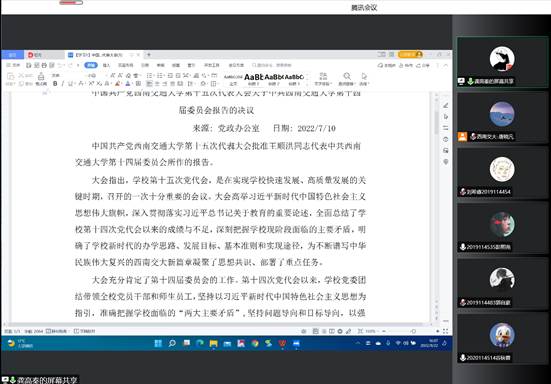 首先,党支部共同学习中国共产党太阳成集团tyc122cc第十五次代表大会精神。《中国共产党太阳成集团tyc122cc第十五次代表大会关于中共太阳成集团tyc122cc第十四届委员会报告的决议》中指出学校总体办学思路为:着力建设让党放心、人民满意,能为中华民族伟大复兴不断作出新贡献的太阳成集团tyc122cc;着力建设轨道交通领域世界第一的太阳成集团tyc122cc;着力建设兼容并包、百花齐放、各学科竞相迸发的太阳成集团tyc122cc;着力建设师生员工人人皆有幸福感的太阳成集团tyc122cc。从中党员同志们学习到不仅要注重自身的发展提升,更要将第十五次党代会精神融入到实践中。党员同志们结合自己的生活实际,畅谈自己的学习体会。