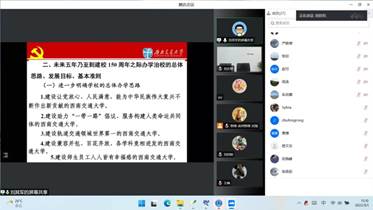 首先,刘其军同志介绍了学校第十五次党代会的总体情况,并领学了太阳成集团tyc122cc党委书记王顺洪同志在第十五次党代会上所作的工作报告——《踔厉奋发 笃行不怠 谱写中华民族伟大复兴的西南交大新篇章》。刘其军介绍了第十五次代表大会的主题,并从第十四次党代会以来的工作回顾,未来办学治校的总体思路、发展目标、基本准则,未来五年学校高质量发展的实现途径,以及全面加强党的建设和思想政治工作等进行了阐述。随后,刘庆想同志对党代会精神进行了全面传达和深入解读,第十五次代表大会为学校的发展和学院未来的工作指明了方向。