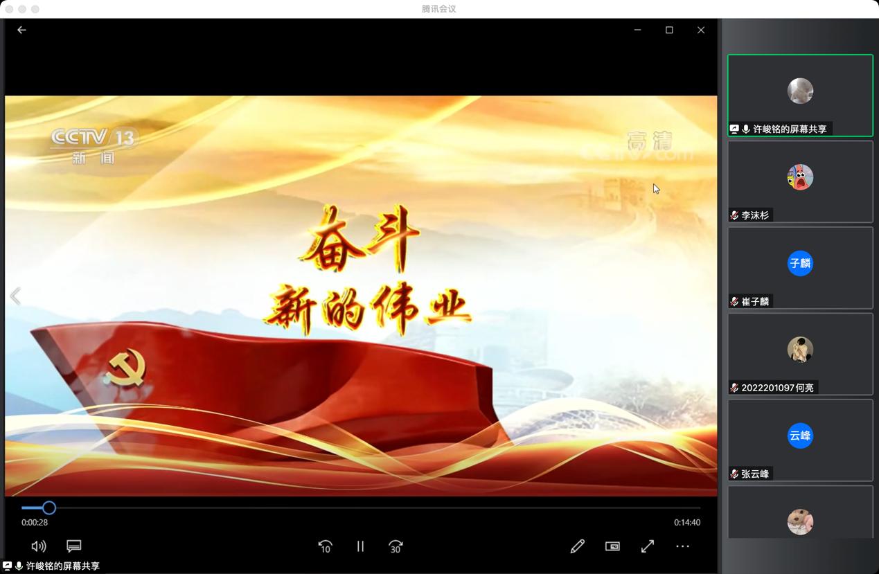 会议开始时,党支部组织委员许峻铭同志带领大家一同收看了《奋斗新的伟业。