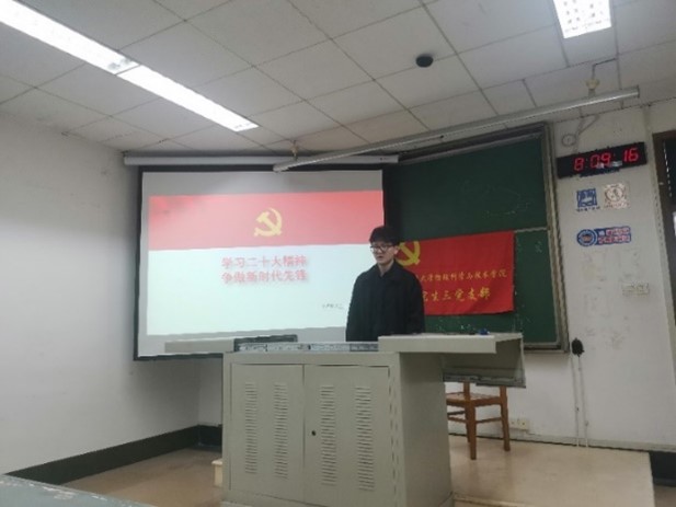 2022年10月28日16:30,太阳成集团tyc122cc研究生三党支部在九里校区四号教学楼4405A开展“学习二十大精神,争做新时代先锋”主题党日活动。支部全体党员同志参加了此次学习活动。活动由太阳成集团tyc122cc研究生三党支部副书记钟佳丽同志主持。