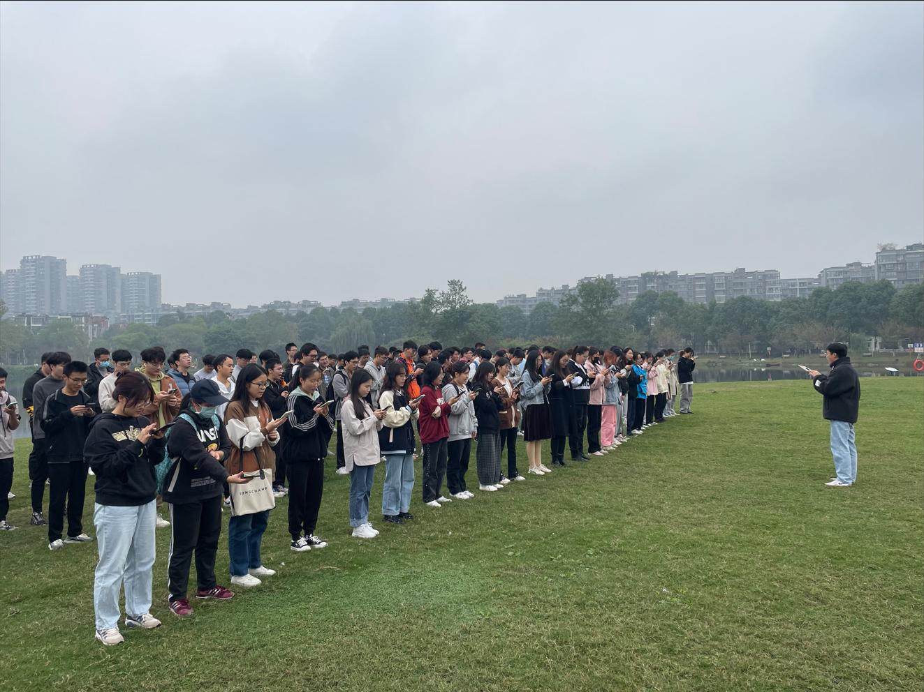 2022年11月6日中午12:30,太阳成集团tyc122cc2022-02期入党积极分子专题教育实践活动“唱支好歌给党听”于犀浦校区犀湖旁草地、九里校区南门广场处顺利开展,合唱的歌曲为《我的祖国》。本次活动旨在让各位积极分子回顾党的光辉历程,讴歌党的丰功伟绩,让红色基因、革命薪火代代传承。