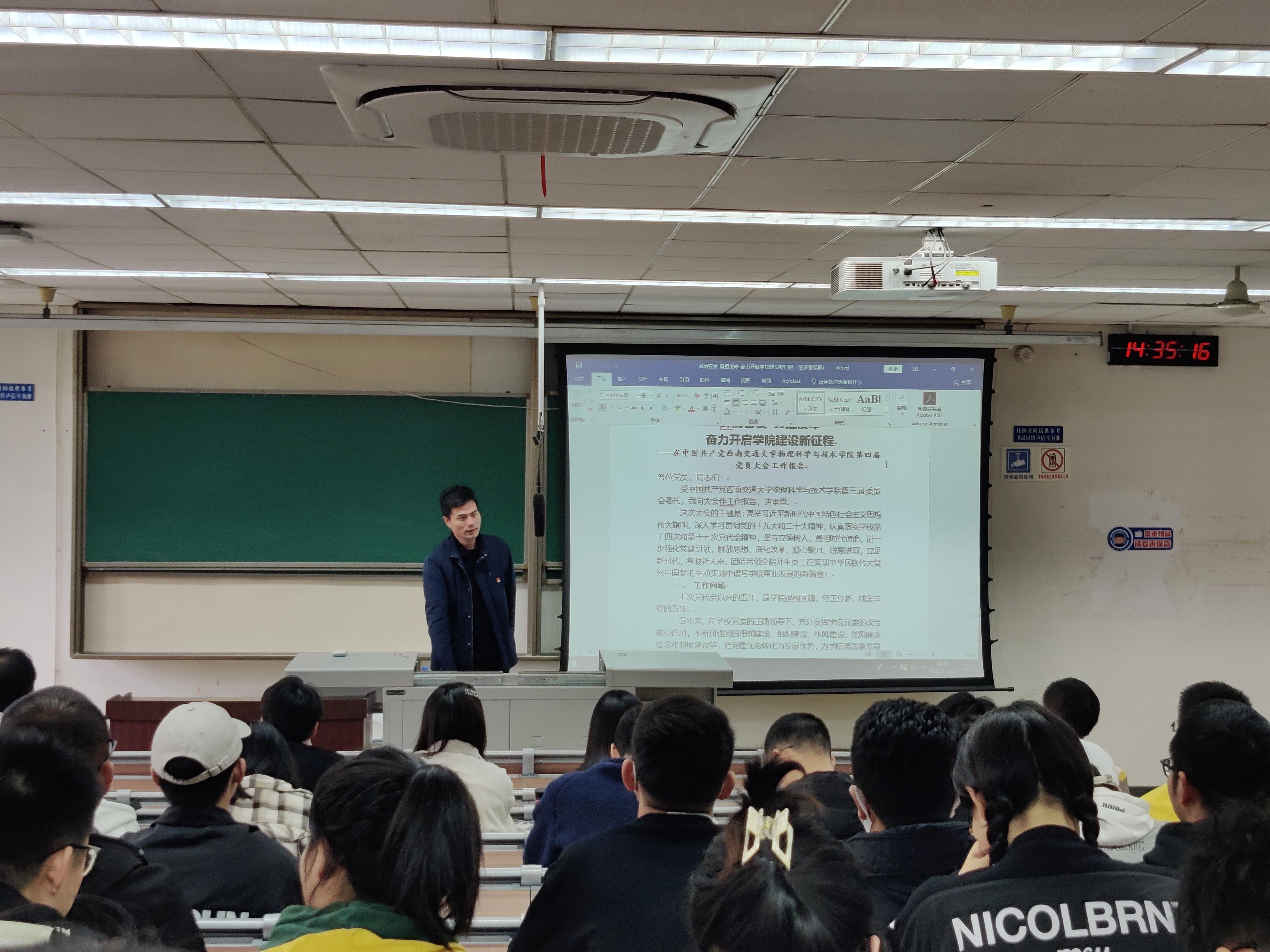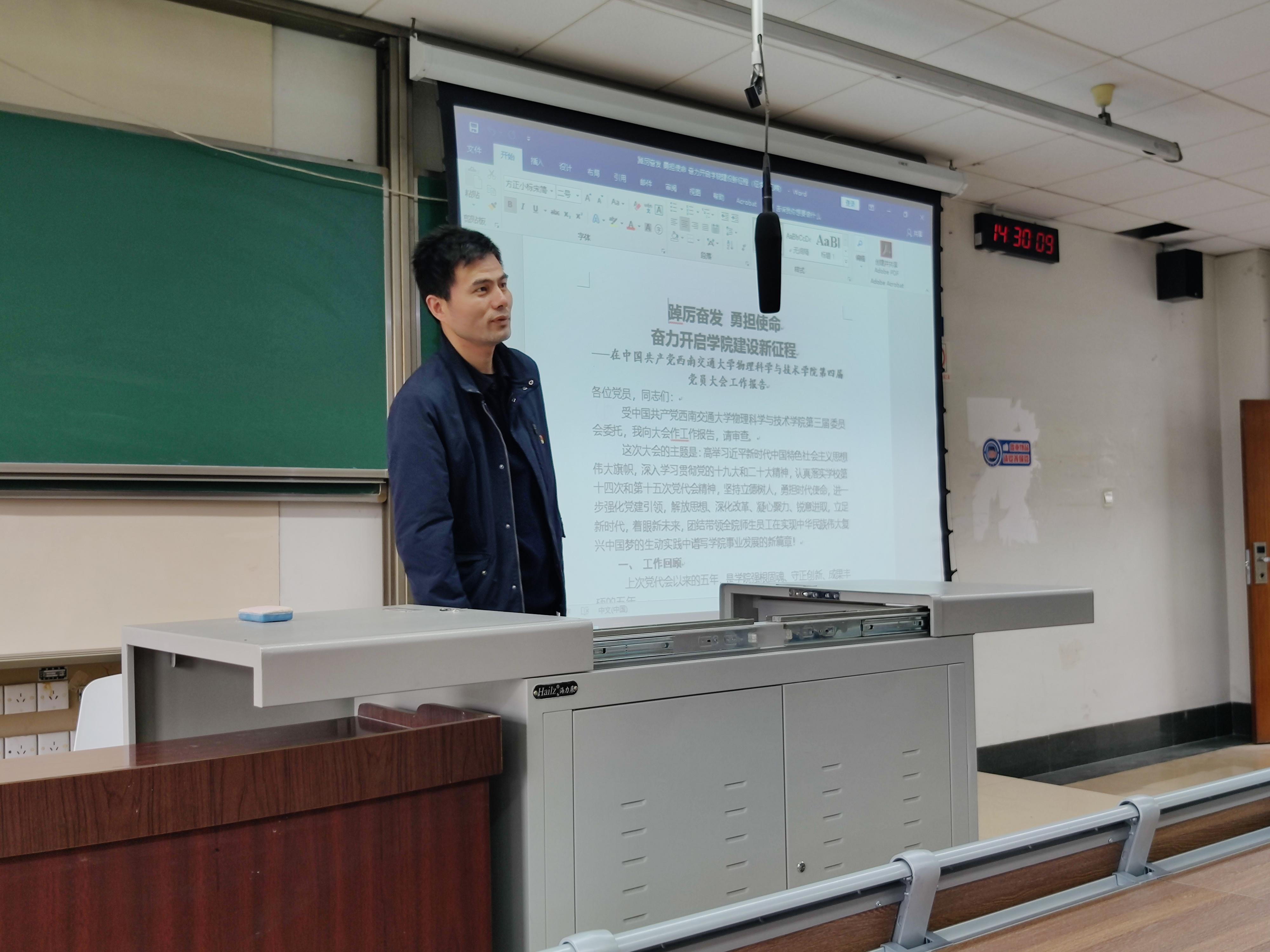 2022年11月10日14:30,太阳成集团tyc122cc在九里校区J4324召开了第四届研究生党员代表大会,本次会议由物理科学与技术公司党委副书记魏振兴主讲,太阳成集团tyc122cc周玲老师和杨昊戬老师以及全体研究生党员参加本次会议。