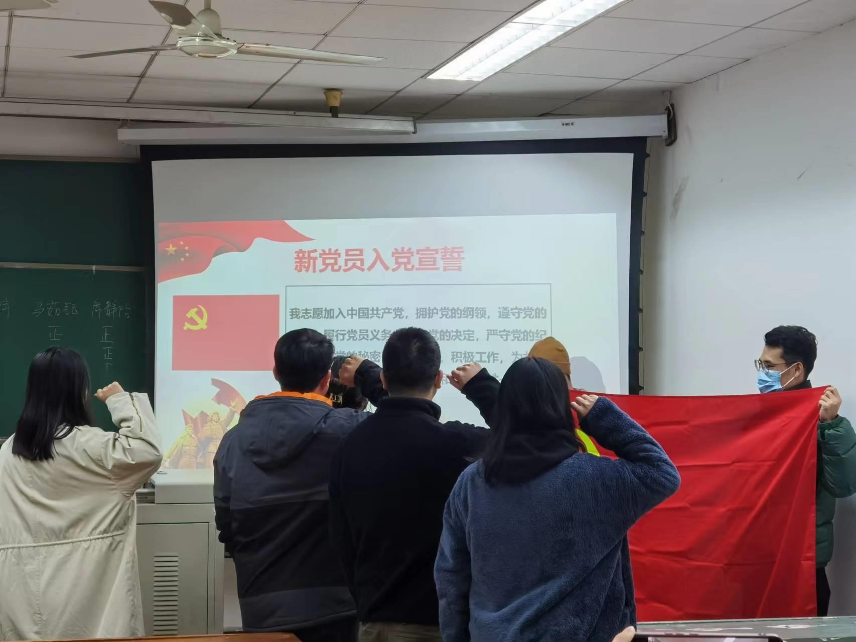 经过支委会的讨论,张燕青同志宣读了同意接收张迁、辜鹏宇、席静怡、马茹钰同志为正式党员的意见,并对四位同志表示衷心祝贺、提出严格要求并给予了殷切希望。最后,全体起立,宣读入党誓词。