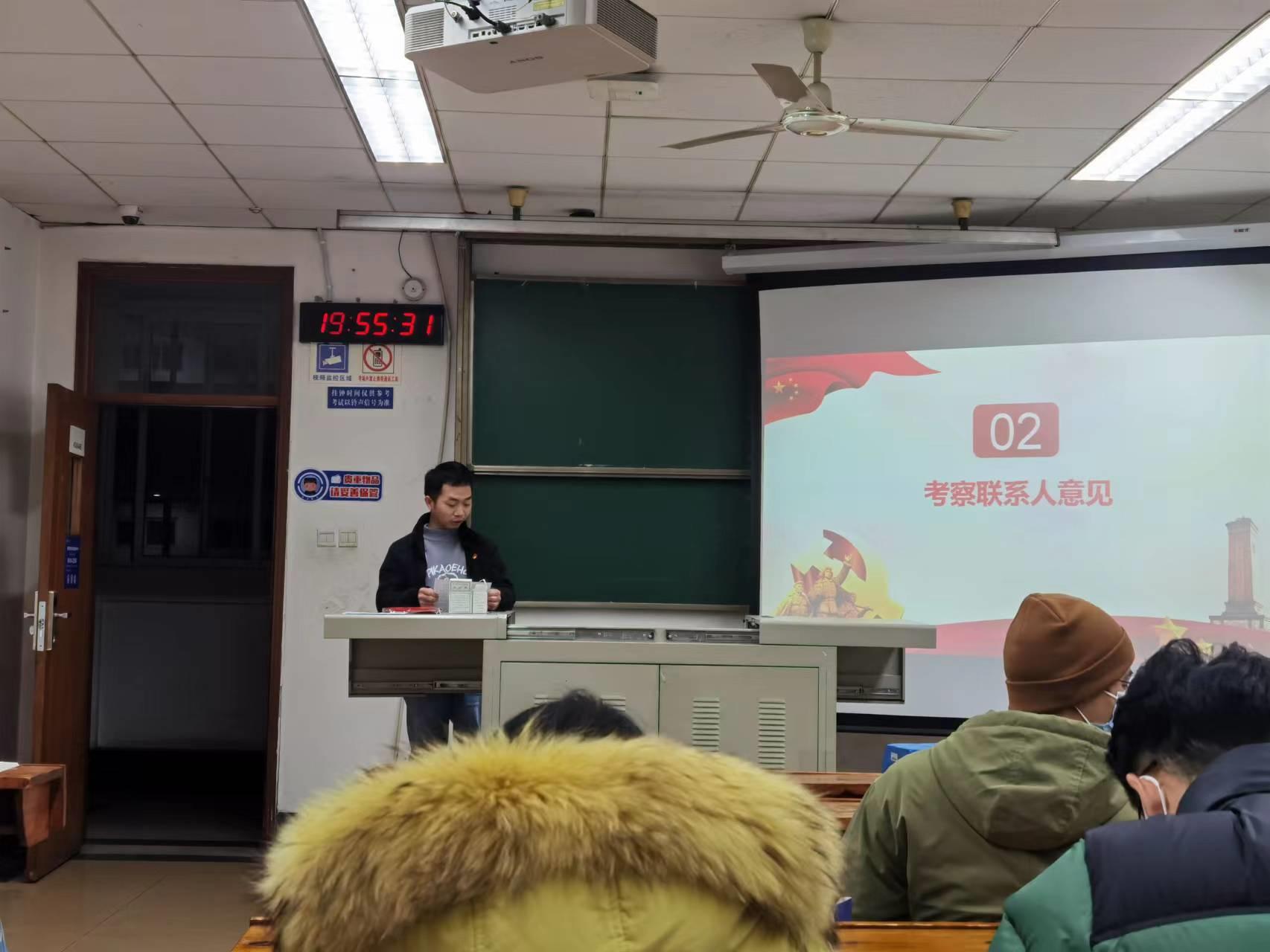 接着,四位同志的考察联系人秦荣荣、陈欣、唐思颖同志依次简单介绍各位同志在考察期的表现,思想政治上自觉与党中央保持一致,能够坚持基本原则,平时注重学习党的知识,入党动机明确,态度端正,建议按期转为正式党员。