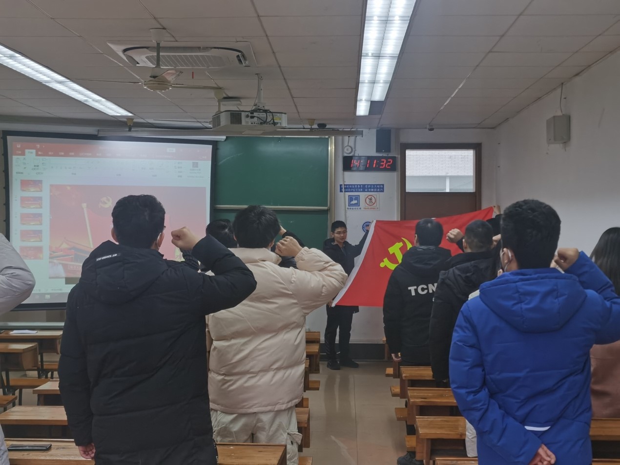 最后,党支部书记杨昊戬同志带领大家重温入党誓词。“我志愿加入中国共产党,拥护党的纲领,遵守党的章程,履行党员义务,执行党的决定,严守党的纪律,保守党的秘密,对党忠诚,积极工作,为共产主义奋斗终身,随时准备为党和人民牺牲一切,永不叛党。”80个字的入党誓词,包含了党的性质、宗旨、纲领、目标等,从党的十二大写入党章沿用至今,是共产党人初心使命的集中体现。要牢记入党誓词,不断叩问初心,守护初心,不断坚守使命,始终做到初心如磐、使命在肩。