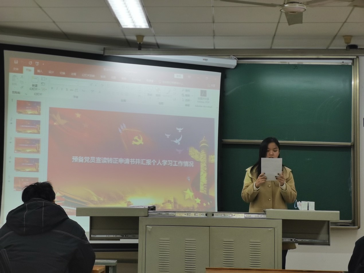 接着,四位预备党员进行个人年度汇报,宣读转正申请书,陈述成为预备党员一年以来个人工作和学习情况。在个人陈述后,入党介绍人对四位预备党员一年来的情况做出了简单评价。正式党员们对其是否转正,进行投票表决并报上级党委。