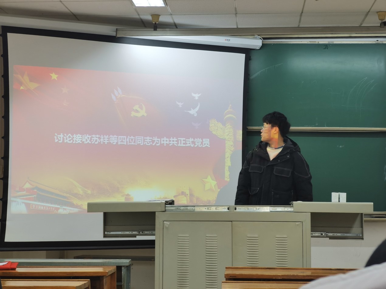首先,党支部副书记张文同志表示苏祥、李志儒、何亮、陈欣欣4位预备党员均已通过党组织层层考核,根据支部委员会研究意见,今日按期召开转正大会。