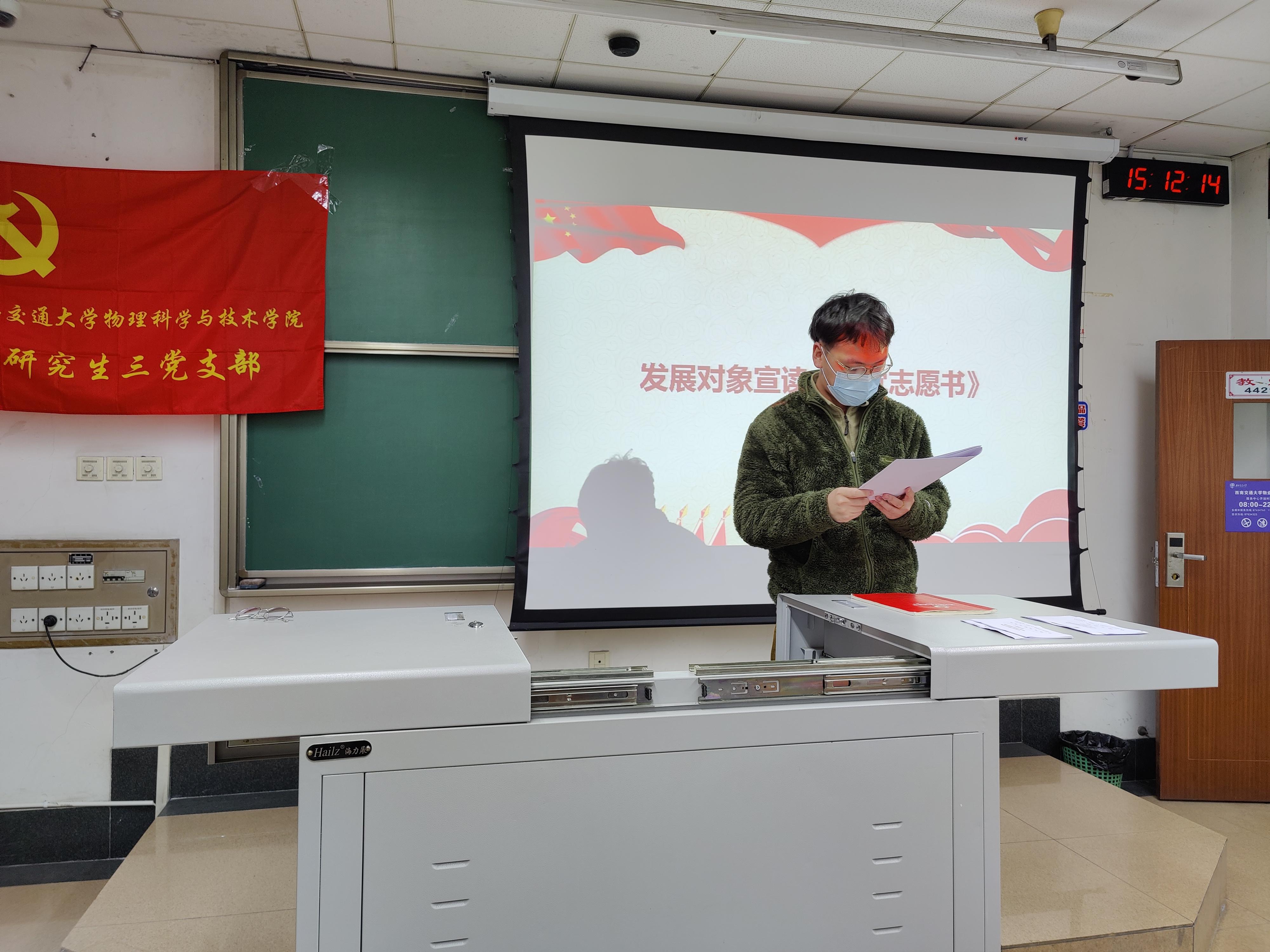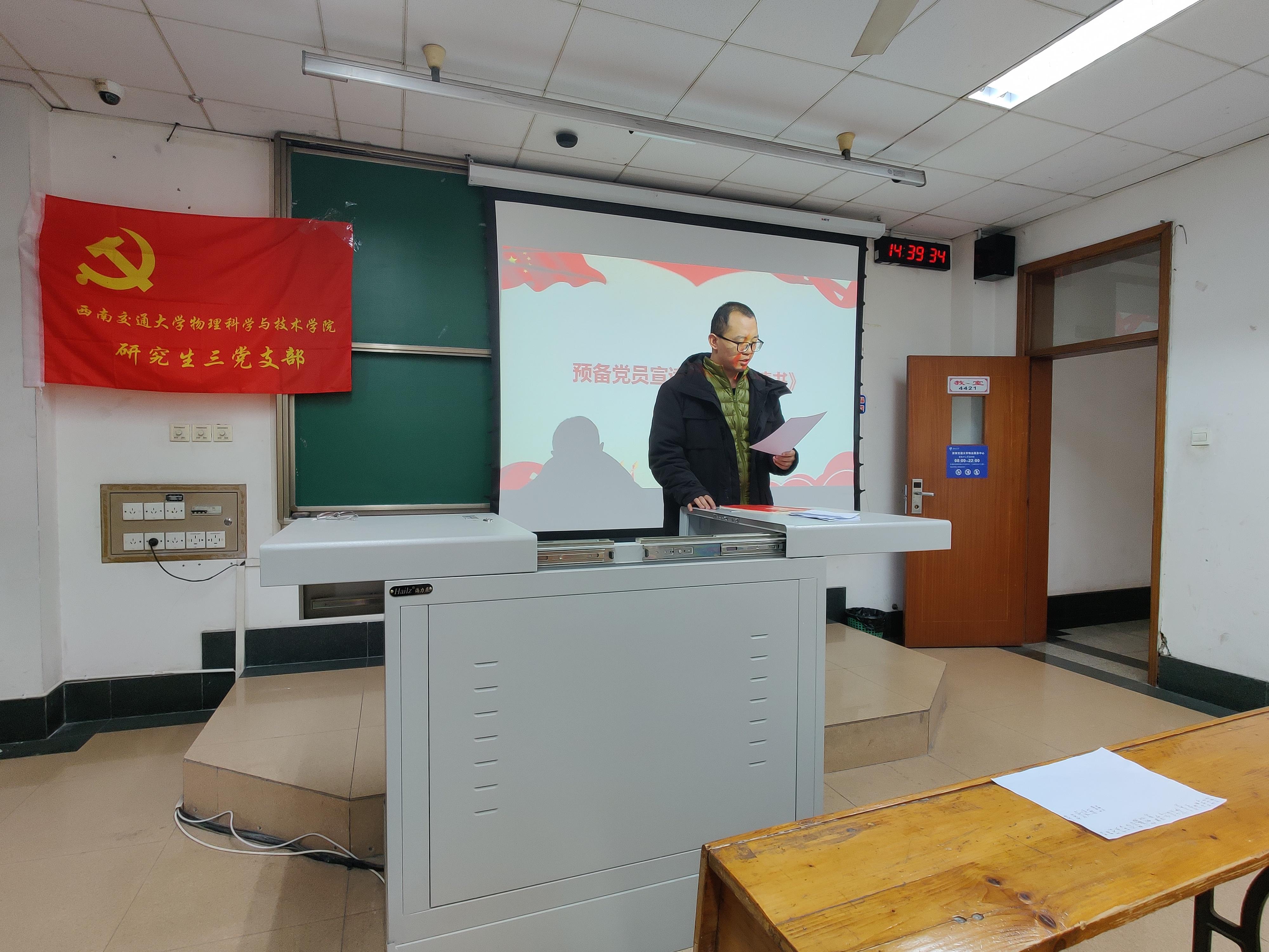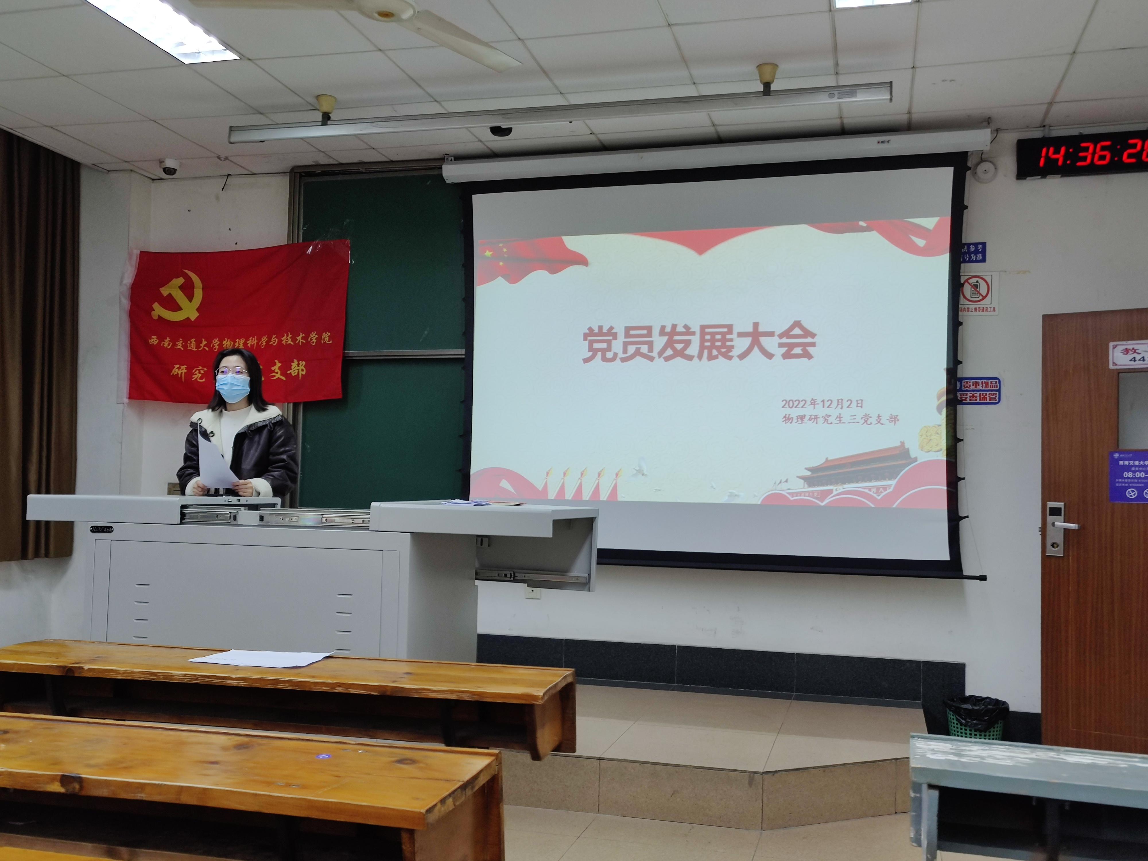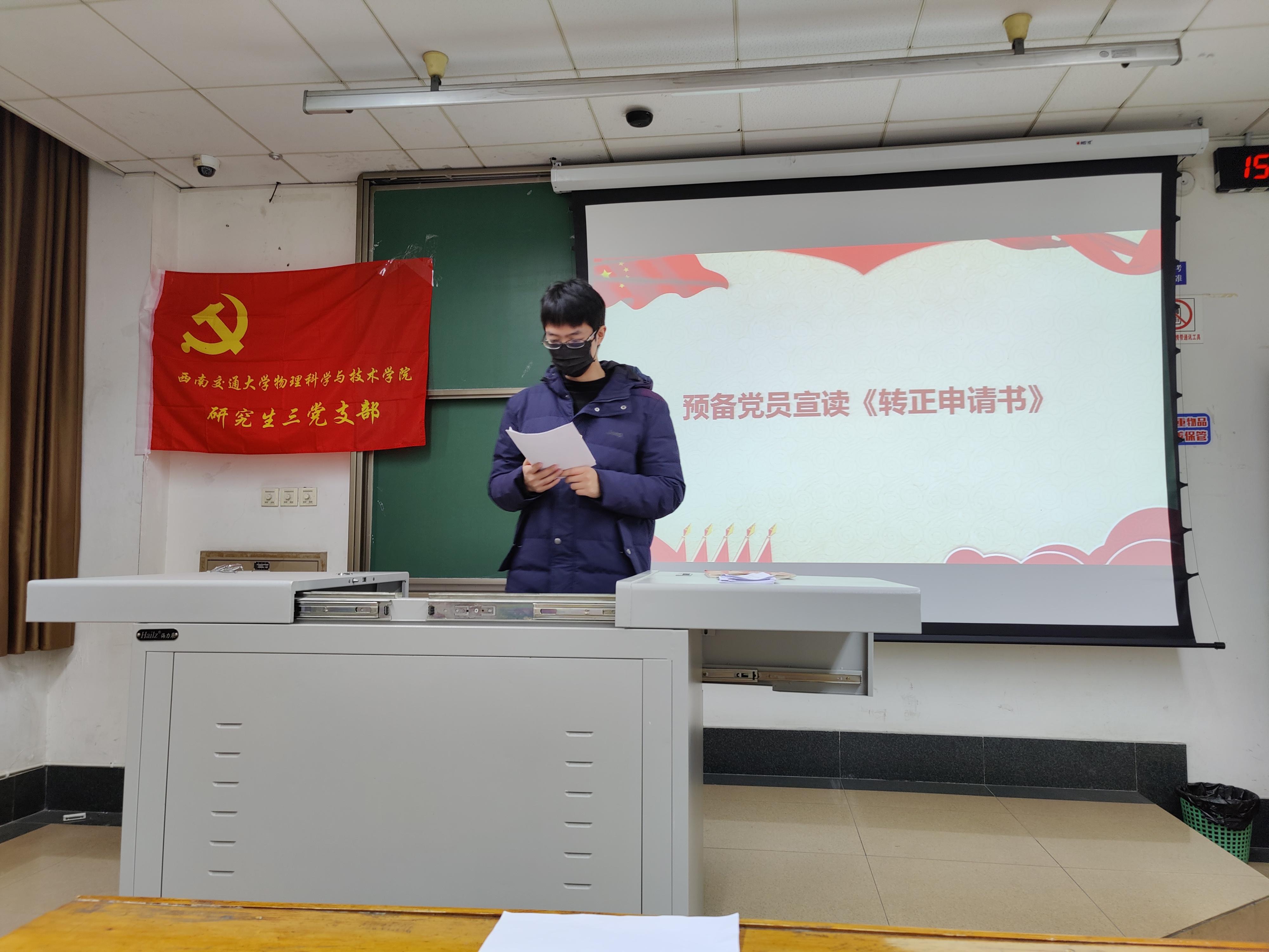 2022年12月9日14:30,太阳成集团tyc122cc研究生三党支部在九里校区J4421召开预备党员转正大会暨预备党员接收大会。支部共有正式党员26名,因病、因事请假5名,实到正式党员21名,符合有关规定可以召开大会。本次会议由太阳成集团tyc122cc研究生三党支部副书记钟佳丽同志主持。