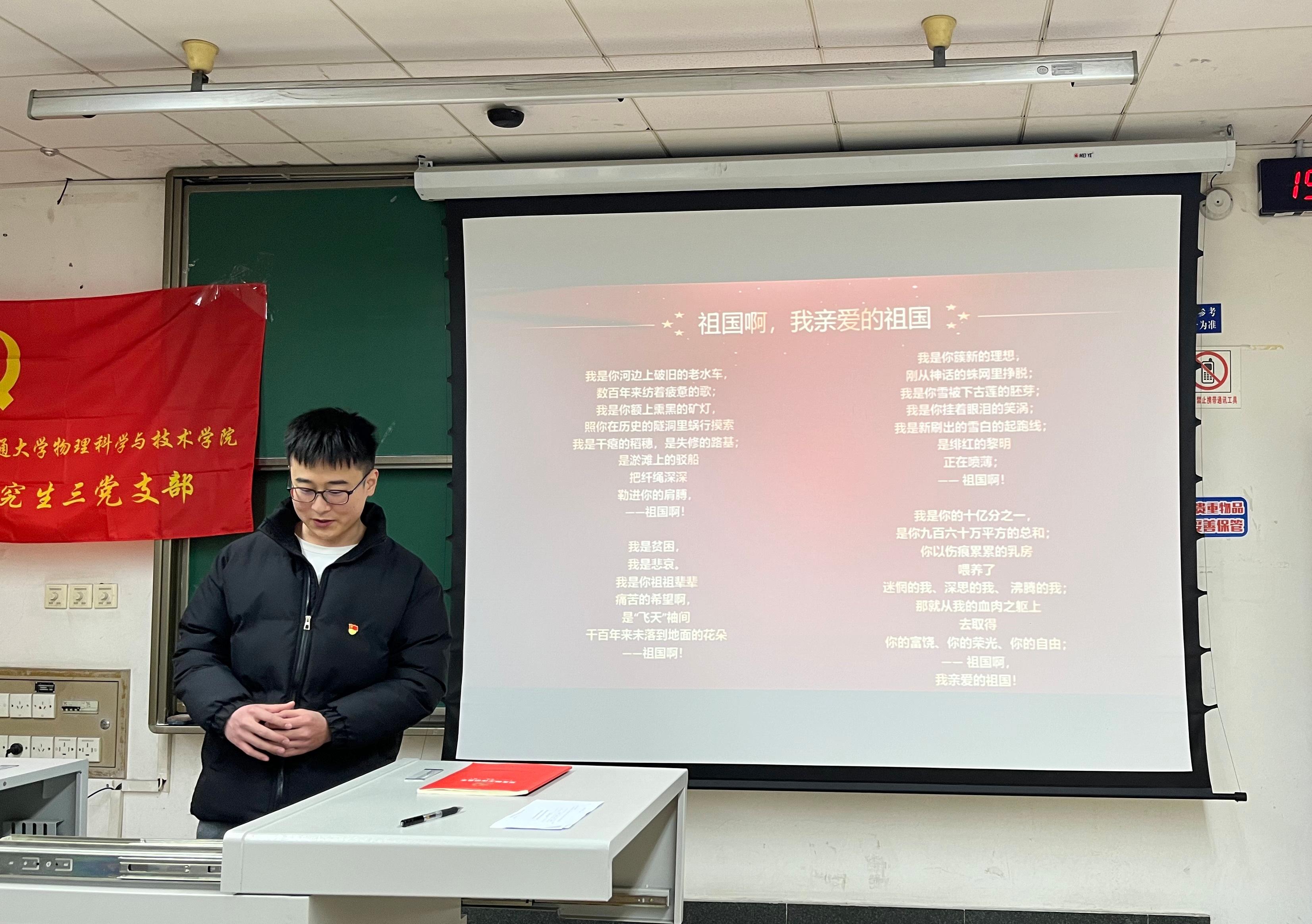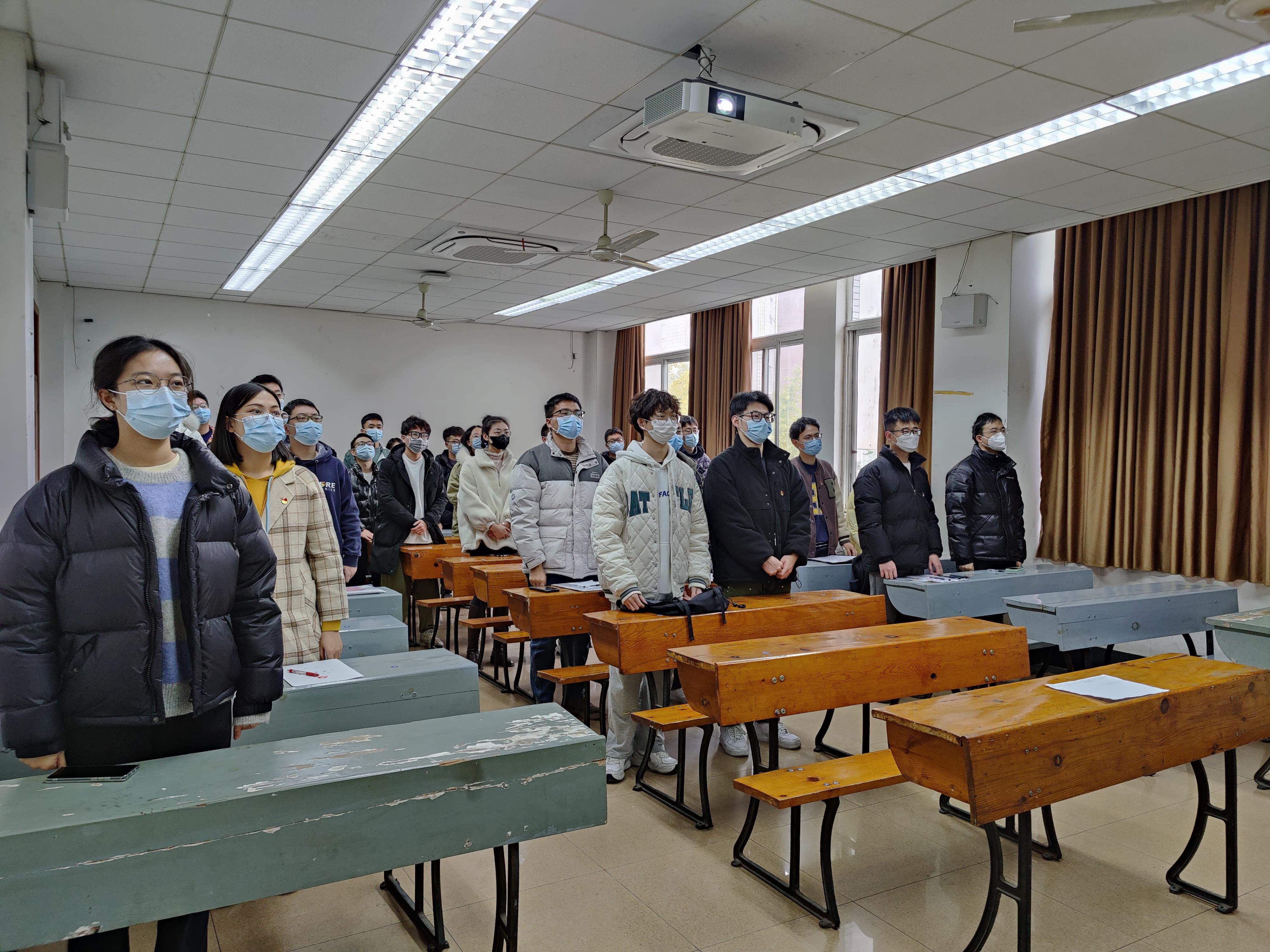 首先在支部副书记钟佳丽同志的组织下,全体同志起立,共同奏唱国歌。