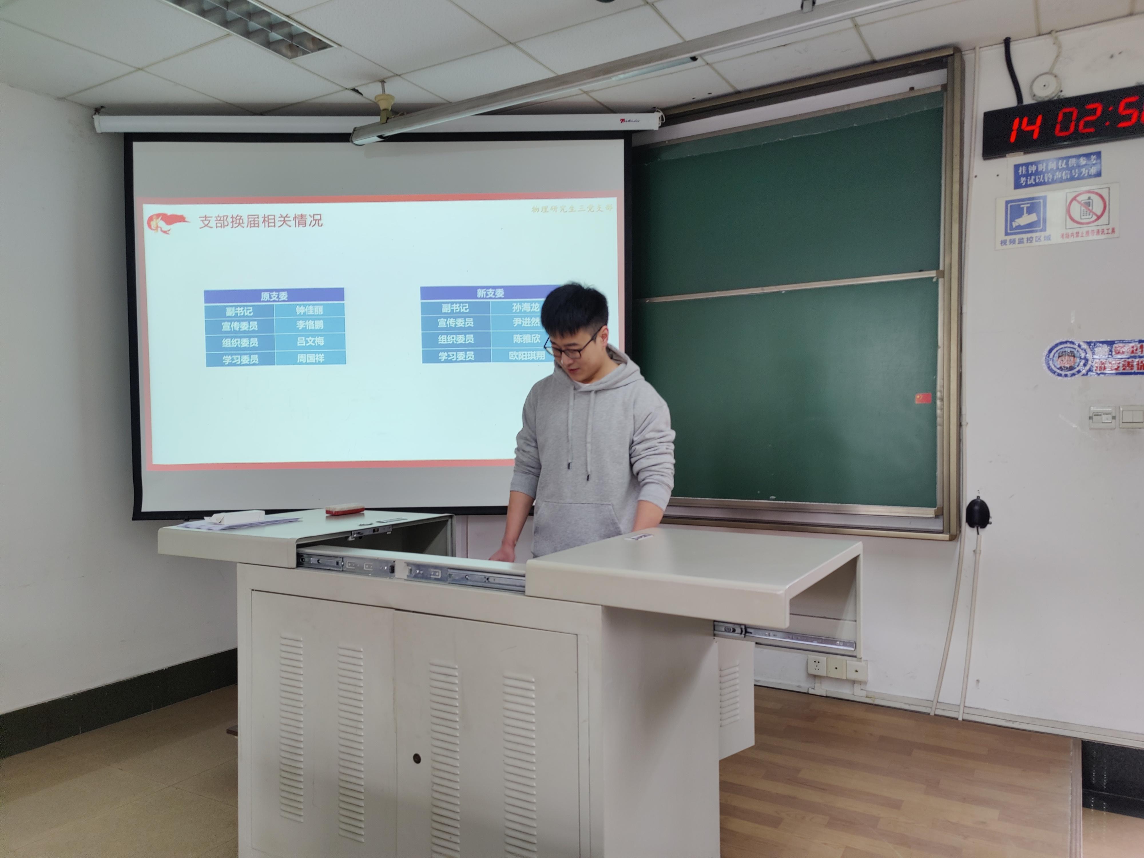 首先,孙海龙副书记向支部同志介绍了支部换届情况。孙海龙同志代表全体党员对上一任支部委员的付出表示感谢,并表示新一任支部委员将会再接再厉,继续做好支部工作。