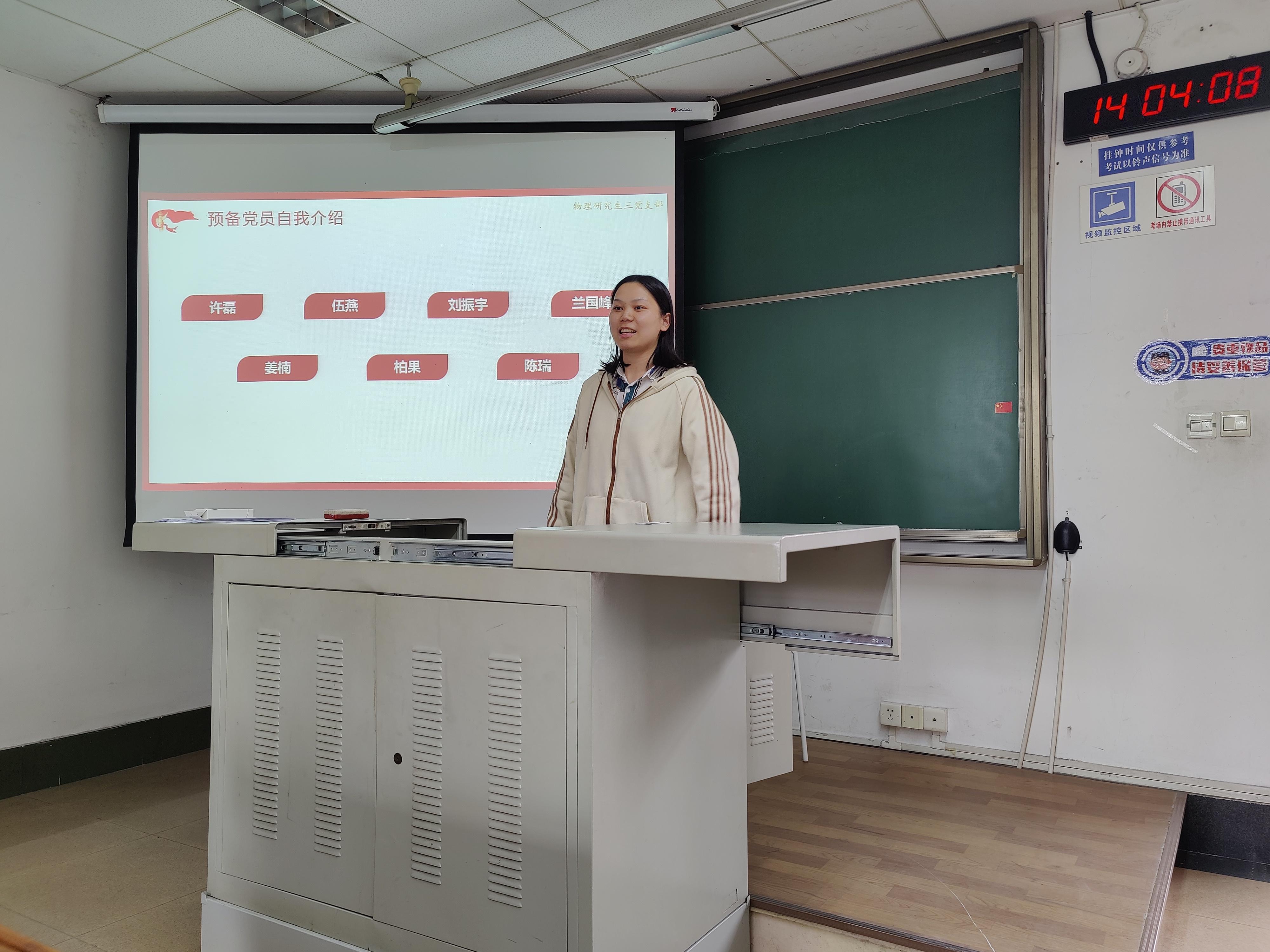 接着,上学期末新加入党支部的七位预备党员同志进行自我介绍,支部全体党员对新同志的加入表示热烈欢迎。随后,支部展开民主评议活动,各位党员同志分别对支部成员过去一年的表现进行评价,评议结果交由孙海龙同志整理。