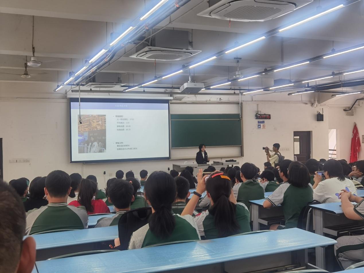 最后同学们在志愿者的带领下,同学们边欣赏交大校园内沿途的风景边前往X2321,准备聆听“走进交大”的主题讲座。过程中,同学们与志愿者们积极互动,提出诸多关于交大建校历史、学术活动和校园设施等的问题,与同伴互相分享研学途中的感受和参观的喜悦,展现出对西南交大这所拥有百年深厚底蕴名校的憧憬与向往。