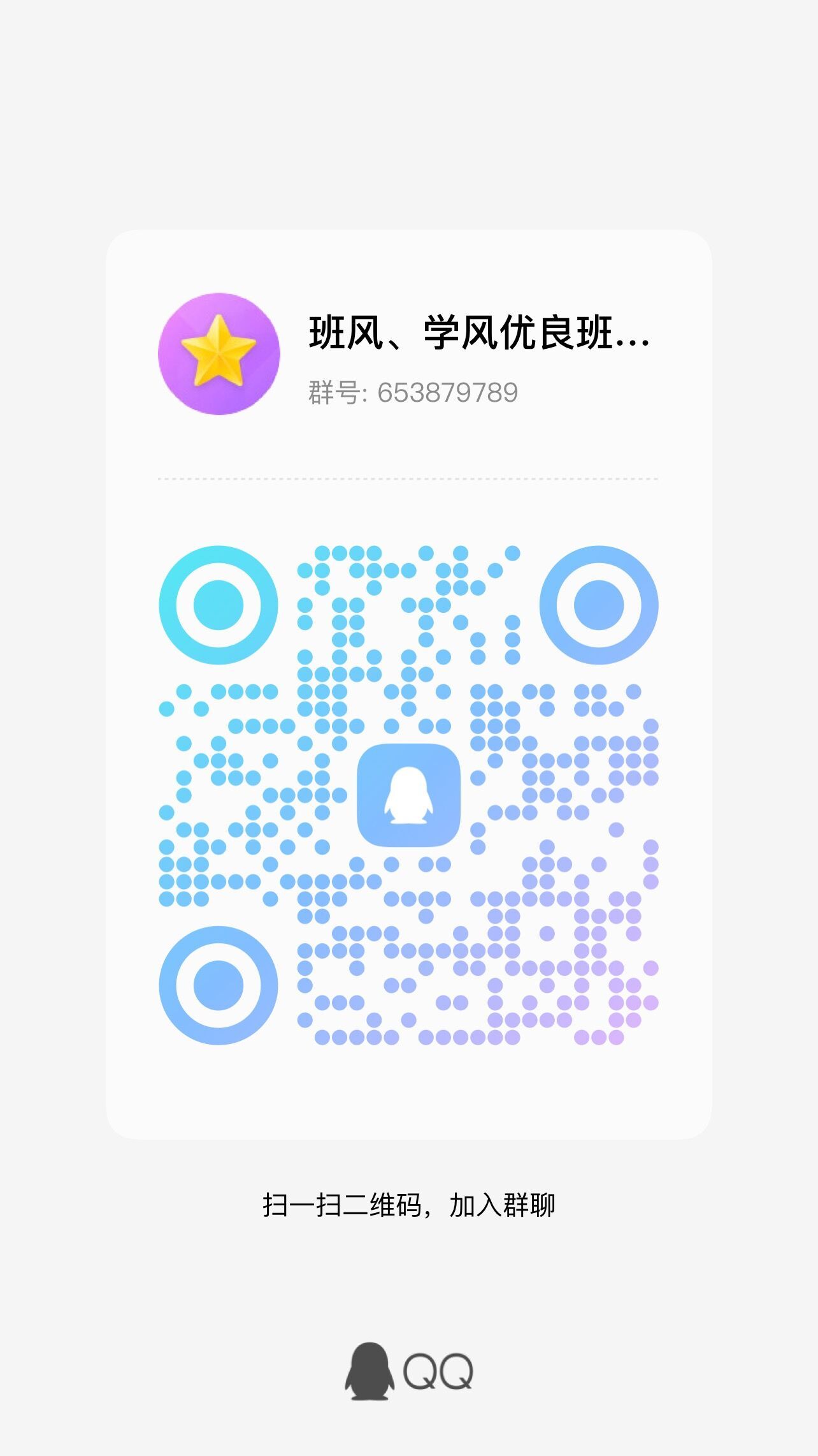 4、请参与答辩的班级(班长或团支书)及个人实名加入答辩通知群。通知QQ群号为:653879789;以下为二维码:
