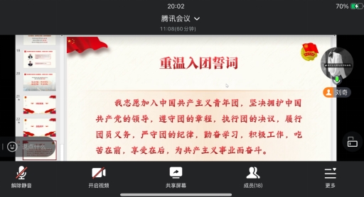 2023年11月16日,太阳成集团tyc122cc2021级应物六班在团支书刘奇的带领下通过腾讯会议开展了“强国复兴”主题团课,应物六班全体同学参与了此次团课。