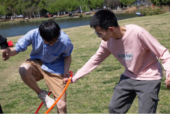 第二个游戏则为“能量传输”,组内所有人员站成一排,每人一根长0.5米的引导槽。赛道长30米,在起点的引导槽放置一个乒乓球,参与队员使用引导槽将乒乓球传递给下一位队员,最后一位队员将乒乓球传递到水杯即算成功。在第一个游戏的铺垫下,第二个游戏过程中同学间的团队合作能力明显有所提升,大家也进一步享受了由游戏所带来的乐趣。