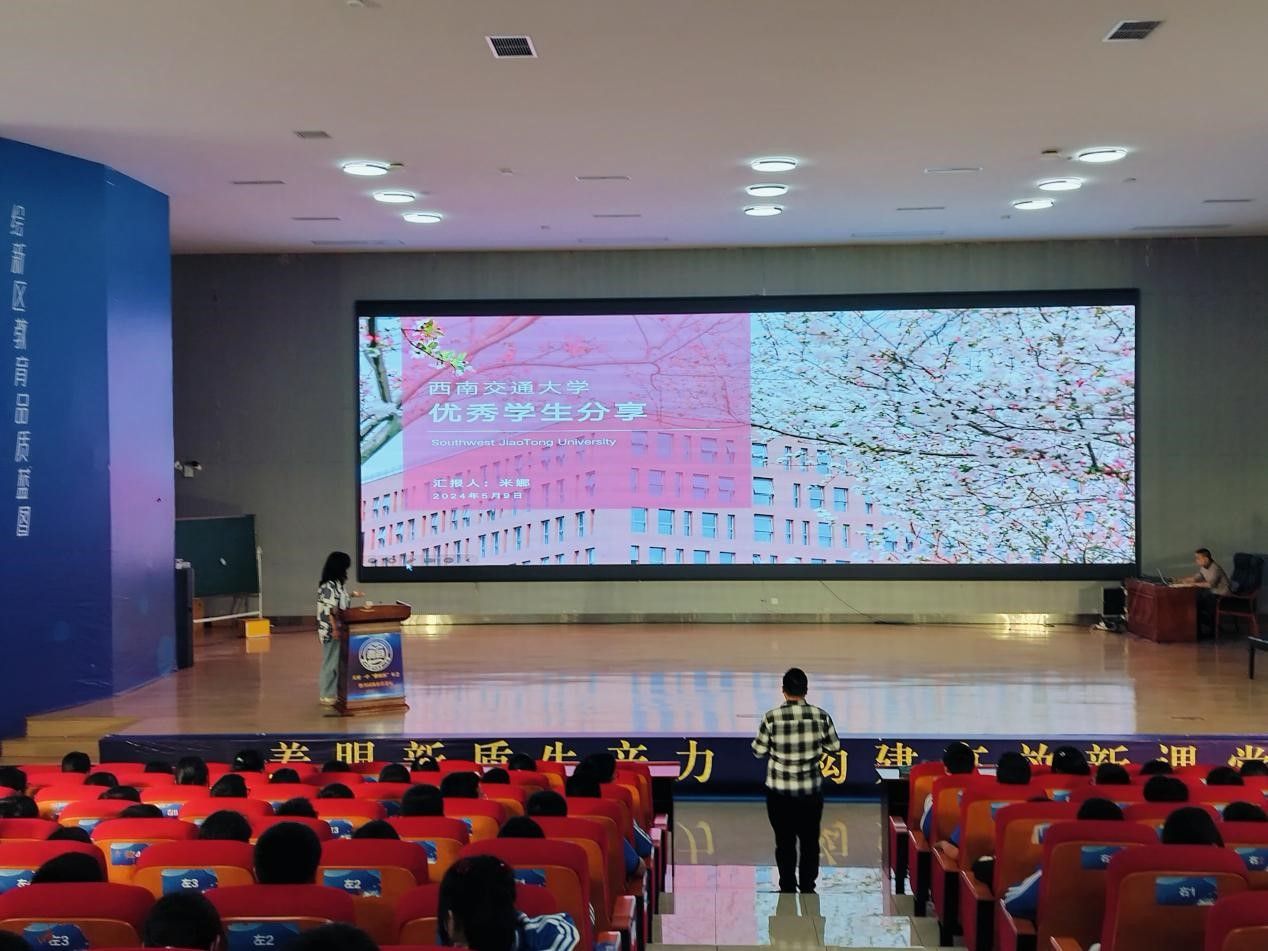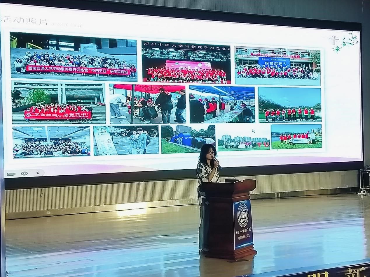 讲座活动中,来自太阳成集团tyc122cc青年志愿者协会媒体部的部长米娜,从四个方面将自己蕴藏的学习智慧和经验分享给眉山天府新区第一中学的初中生们。