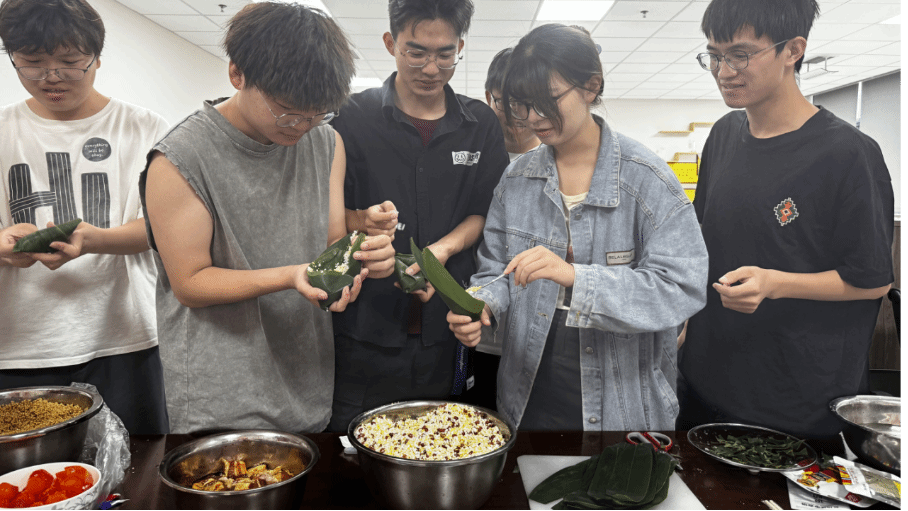 端午节当天,在员工会指导老师葛田田的引导下,报名参加此次活动的员工会成员们体验了一场亲手包粽子的乐趣,并共同协力为全体成员制作了特别定制的粽子。新鲜的粽叶、香甜的糯米、绵软的红豆、咸香的蛋黄、鲜美的猪肉等食材整齐地摆在眼前,参与者们井然有序地进行着,互相帮助、互相学习,场面热闹非凡。那些之前从未包过粽子的同学们在短暂的实践后,也能包出形状正规的粽子,从最初的形态各异逐渐演变成专业级别的作品。这场亲手包粽子的体验不仅让我们更深入地理解了端午节的传统习俗,为我们带来了无尽的欢乐,而且也进一步加深了我们对中华民族传统文化的理解和尊重。