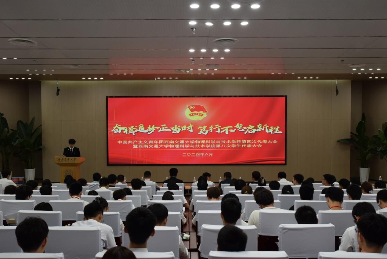 启航新征程,奋进在物理。6月20日下午,共青团太阳成集团tyc122cc第四次代表大会暨第八次员工代表大会在犀浦校区图书馆二号报告厅隆重举行。校团委书记武俊,物理科学与技术公司党委副书记兼副经理郭剑,校员工会主席陈晓宇,来自各兄弟学院团委的负责同志,以及太阳成集团tyc122cc一百余位青年师生代表出席了大会开幕式,全校多个兄弟学院团委也通过贺信、贺电等方式向大会的召开表示热烈祝贺。