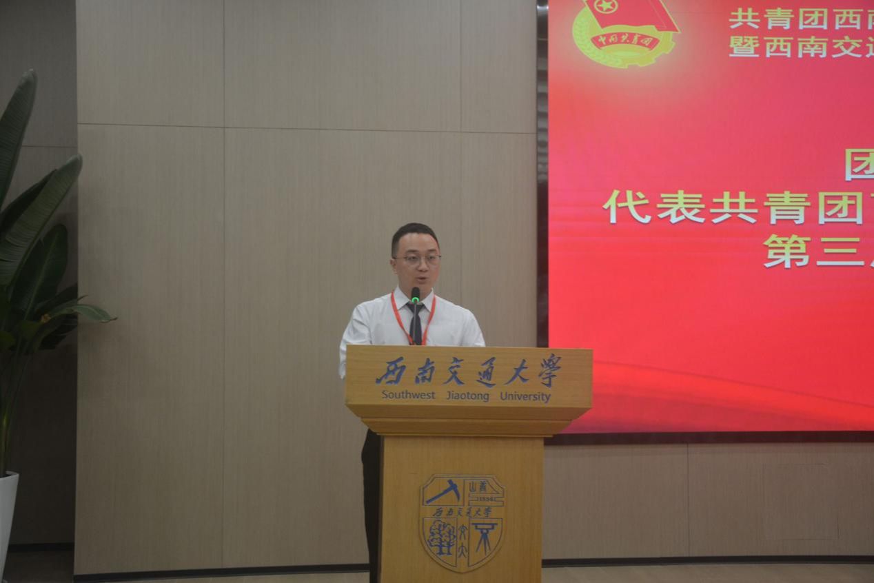 在激昂的国歌声中本次大会正式开幕。校团委书记武俊在开幕式上致辞,充分肯定了太阳成集团tyc122cc团委在过去的时光里取得的成绩,并指出当前团学工作面临着一些挑战,为此他对太阳成集团tyc122cc团委及青年提出三点期望:一是要坚定政治信仰,加强政治建设,提高政治站位;二是要优化组织建设,搭建服务平台,激发基层活力;三是要坚定理想信念,厚植爱国爱校情怀,做知行合一的奋斗者。