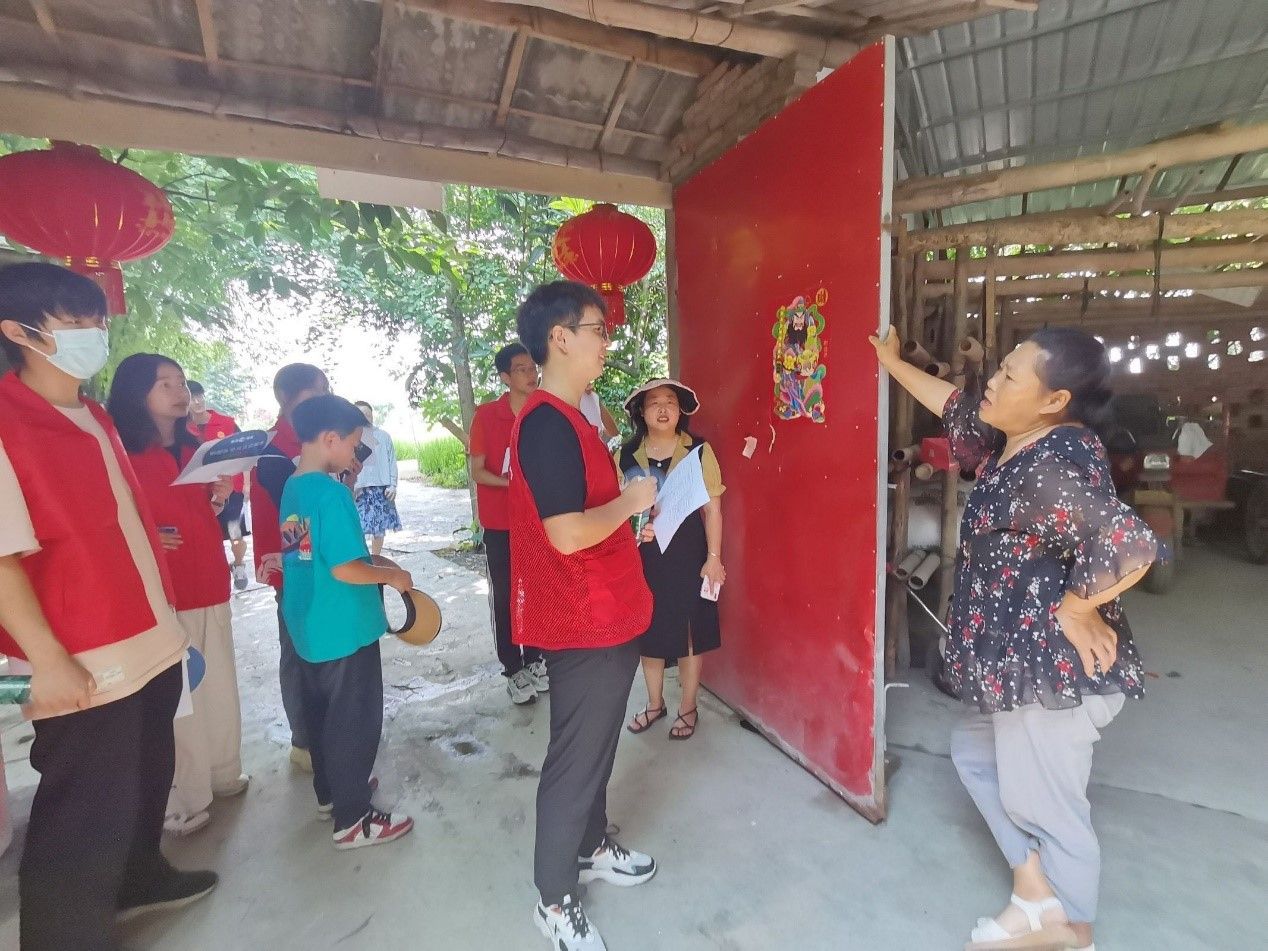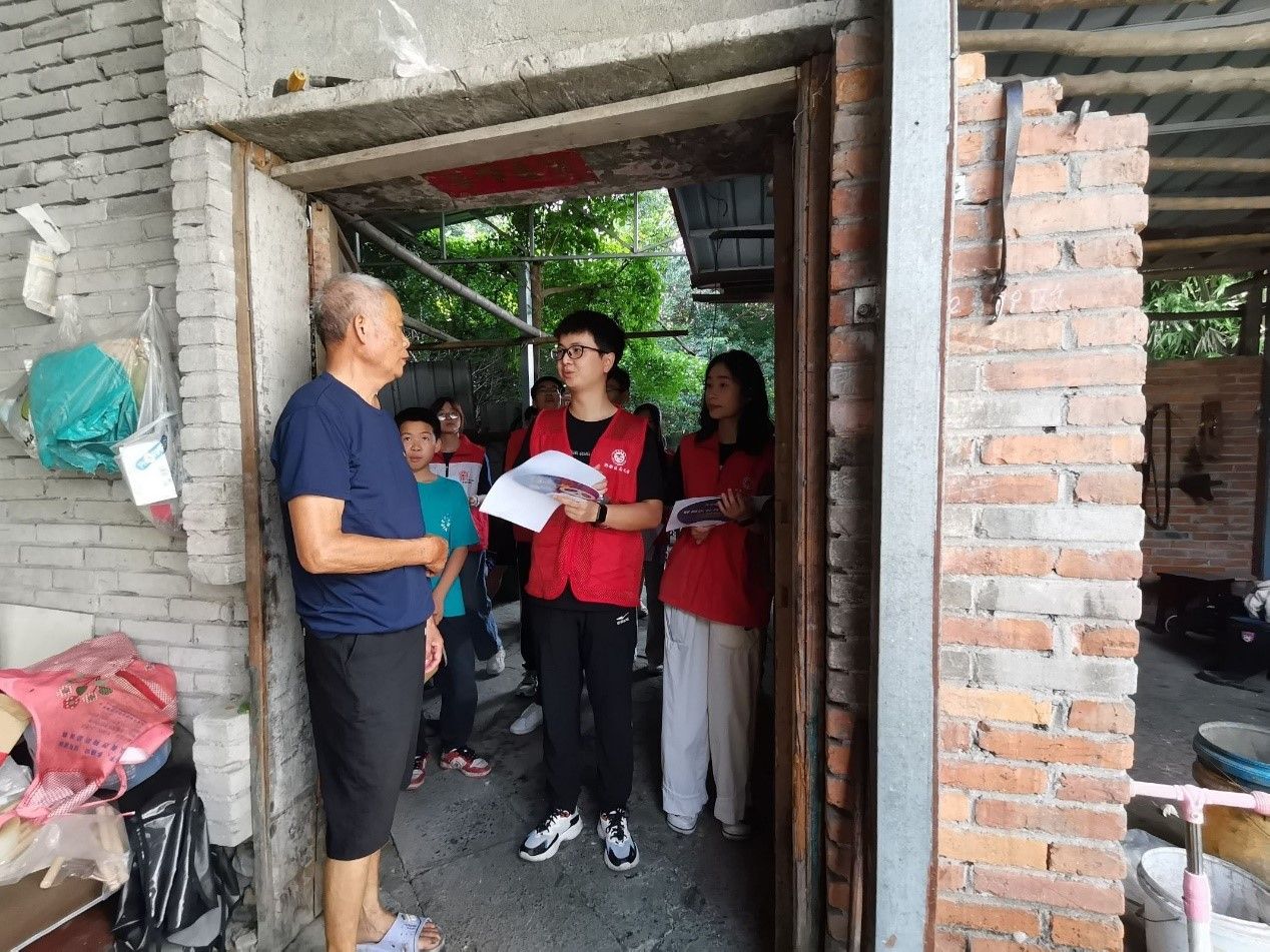 调研结束后实践队同居委会工作人员一道前往村民家中宣传“人居环境优化”。