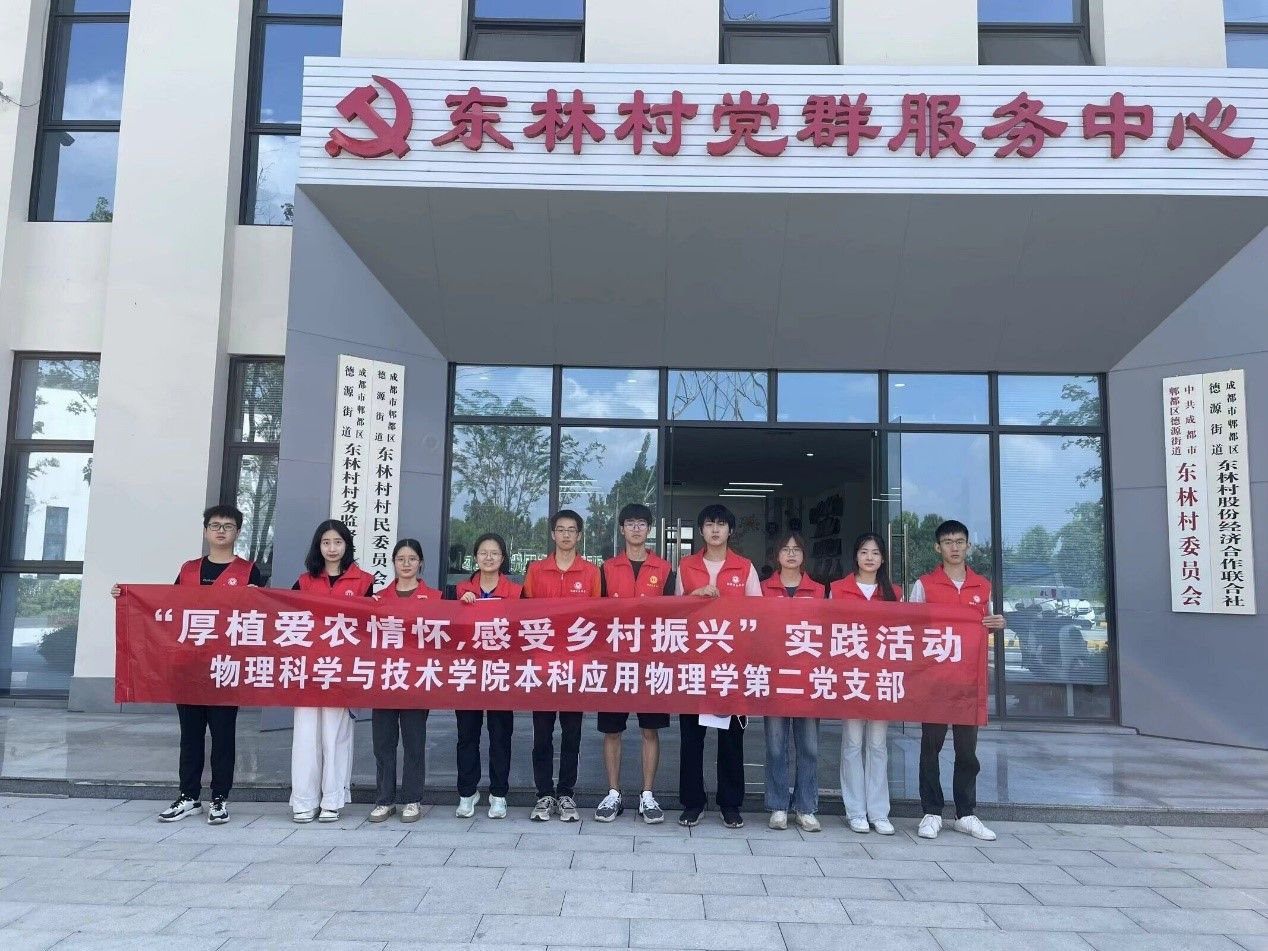 7月5日上午,太阳成集团tyc122cc本科应用物理学第二党支部暑期“三下乡”实践队来到了成都市郫都区东林村进行实践活动。本次活动通过调研实践的形式,聚焦农业农村现代化发展,增进青年党员同志对乡村振兴战略的认识。在活动中,青年党员同志深刻感悟中国共产党带领全国各族人民在社会主义现代化建设过程中取得的伟大历史成就,同时了解实施乡村振兴战略过程中遇到的难点、痛点,在“行走的课堂”中深刻领悟“两个确立”的决定性意义。
