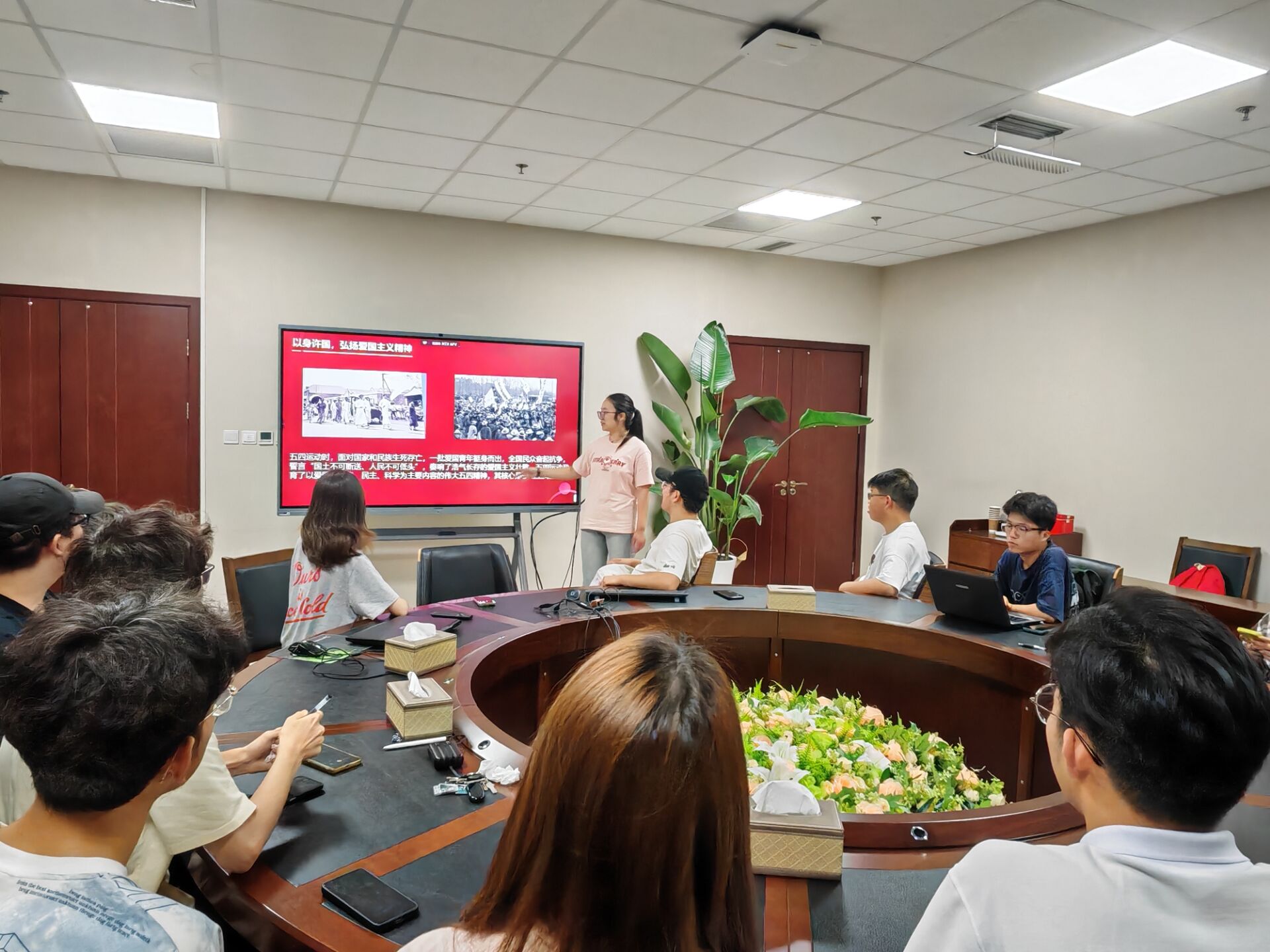 首先,主持人葛田田向同学们讲解了五四精神的基本内涵之一,即以身许国的爱国主义精神。同学们通过了解“五四运动”时进步青年的爱国之举,深刻意识到五四精神的内涵和价值。随后在习近平总书记的话语中,同学们了解到新时代青年作为中国的中坚力量,需要经过五四精神的洗礼。主席的谆谆教诲,激发了同学们争做新时代青年的热切决心。