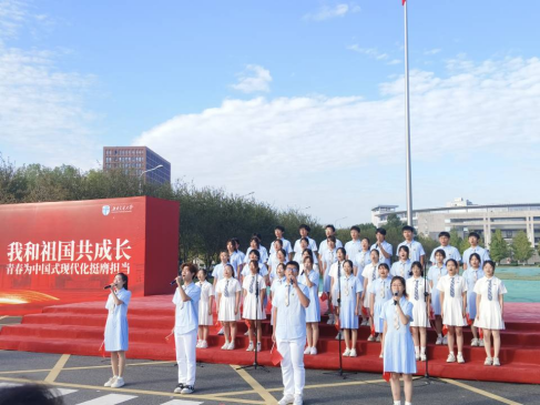在国庆节当天,团支部团员青年组成合唱团,在鲜艳的国旗下奏唱《红旗飘飘》,满怀热情共同祝福祖国繁荣昌盛。新时代团员青年在国旗下诞生,与祖国共同成长。歌声朗朗,吹响青年奋斗号角;红旗猎猎,指引青年前进方向。祖国富强才能助力青年茁壮成长,青年奋斗方能推动国家繁荣富强。一曲红歌唱响青春奋斗之声,团员青年充满热情与活力投身国家建设,在强国道路上勇毅前行。