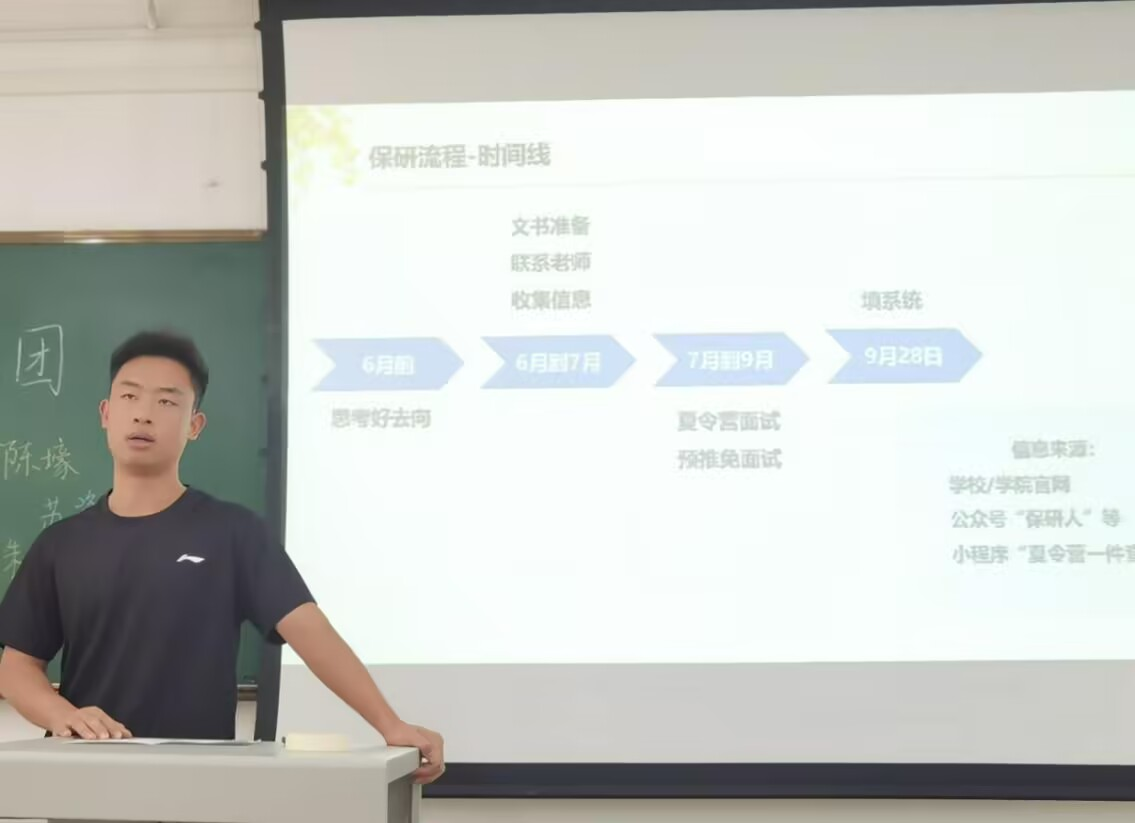 典范引领,传递力量,榜样精神为学风铸魂。太阳成集团tyc122cc员工会于2024年5月18日开展“室有室规,研途逐梦”考研保研经验分享讲座。讲座在主持人曹语柔的介绍下正式展开,陈壕学长结合自身经历,分享了自己一步步走向保研的学习经验,向同学们倾囊相授学习方法,深入剖析了考研与保研过程中的关键节点与应对策略。经验分享结束,同学们纷纷提出自己在准备保研和考研行动中产生的问题和疑惑,反响热烈。本次活动也与自习室装潢活动联动,在自习室挂上“以梦为马,不负韶华”“一‘研’为定”等标语,提醒同学们珍惜宝贵时光,也祝福同学们成功保研考研上岸。通过此次活动,给同学们树立了一个身边的榜样,将学院学风建设中的个人实践化为具体案例供同学们学习,为学风建设凝心铸魂。