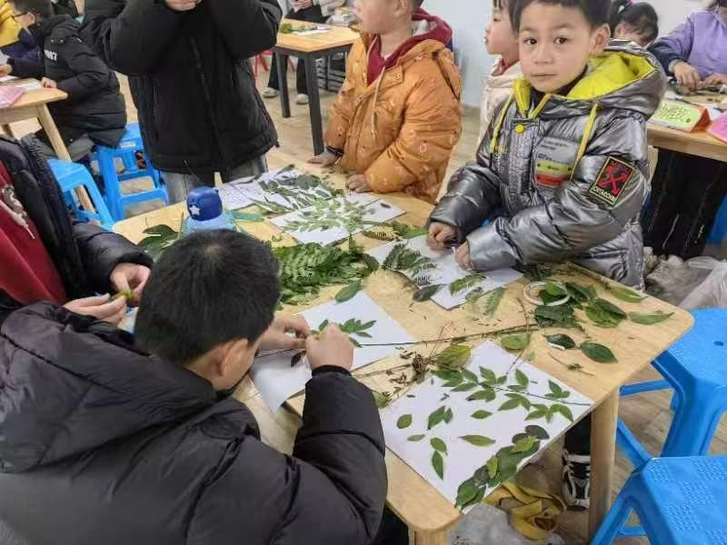 手工落叶贴画活动同样受到了孩子们的热烈欢迎。实践队员们为孩子们准备了各种形状的落叶、贴纸和画笔,鼓励他们发挥想象力,创作出独一无二的手工作品。