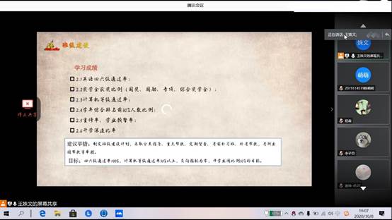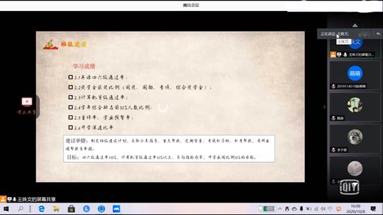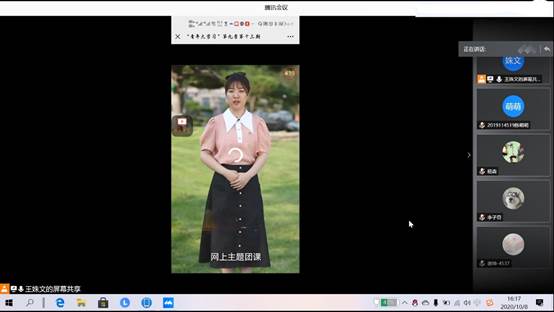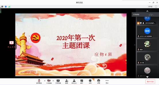 本次主题团课因国庆假期的关系采取云端授课的方式,10月8日下午4点整,应物4班全体同学于腾讯会议开展“青年大学习”主题团课,本次团课由团支书王姝文主持。
