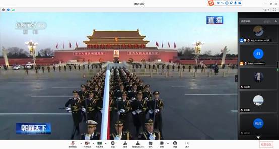 接着,各位同学一起学习了“青年大学习”并发表感悟。然后全体同学一起观看升国旗仪式的回放。那一刻,隔着屏幕,同学们心连心,手“牵”手,并肩同行!随着五星红旗的缓缓升起,每个人的心里都充满了骄傲之情,我们要努力学习文化知识,为中华民族的伟大复兴而奋斗!随后,大家就最近上映的电影《我和我的家乡》展开热烈讨论,影片有笑有泪,短短两个小时,我们却一起见证了祖国的变化,比如建设美丽乡村,植树治沙等等,见证了祖国的强大!
