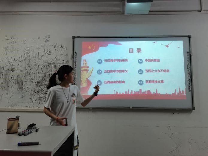 接着,她详细讲解了北京员工运动和上海工人罢工两个部分组成的五四运动。带领同学们学习了五四运动的影响以及五四青年节的意义。