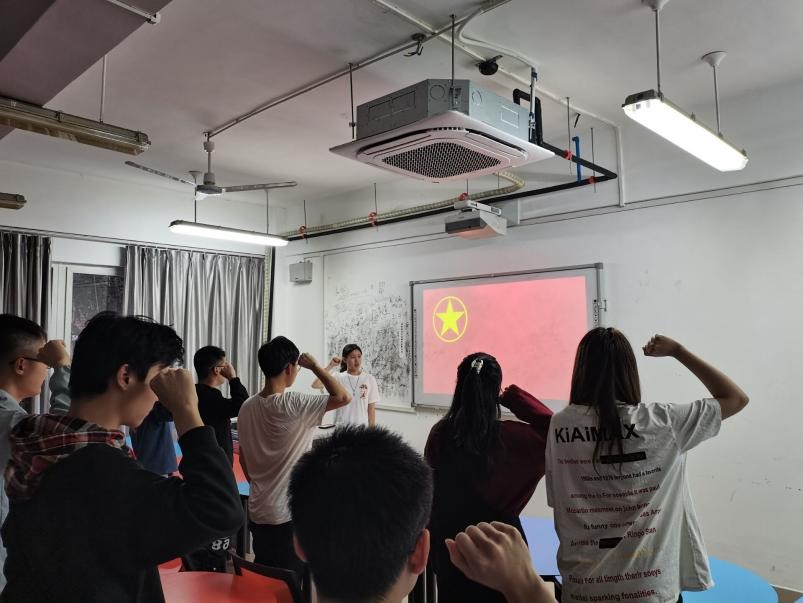 最后,团支书带领同学们进行了重温入团仪式活动。全体团员面向团旗庄严宣誓,并重温了团歌。