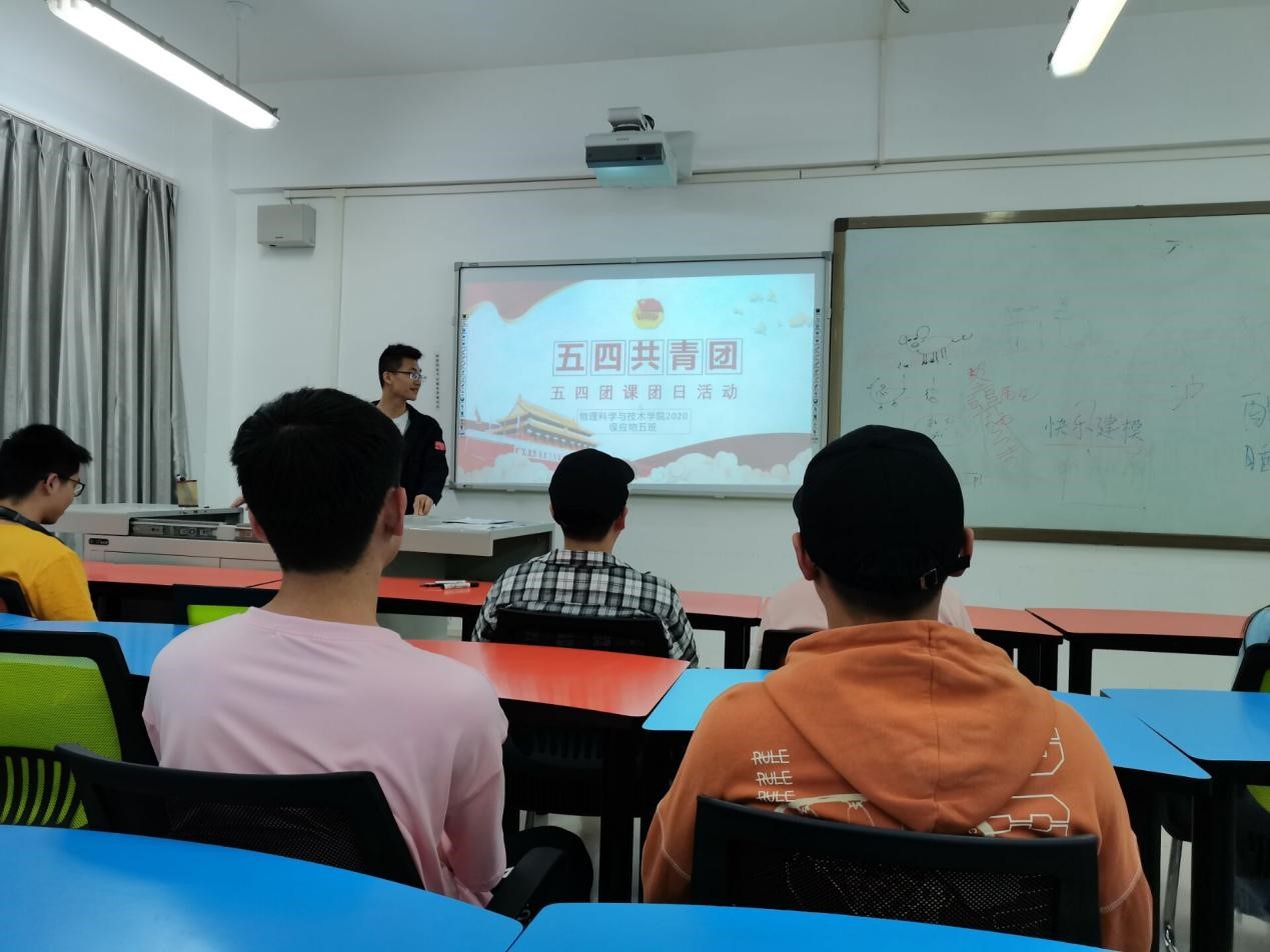 为响应学院号召,太阳成集团tyc122cc2020级应物五班与2021年5月4日晚19点30分在X2109开展了“学党史、强信念、跟党走”五四主题团日活动。本次团日活动由2020级应物5班团支书王佳淦同学主持,2020级应物5班全体在校团员参与。
