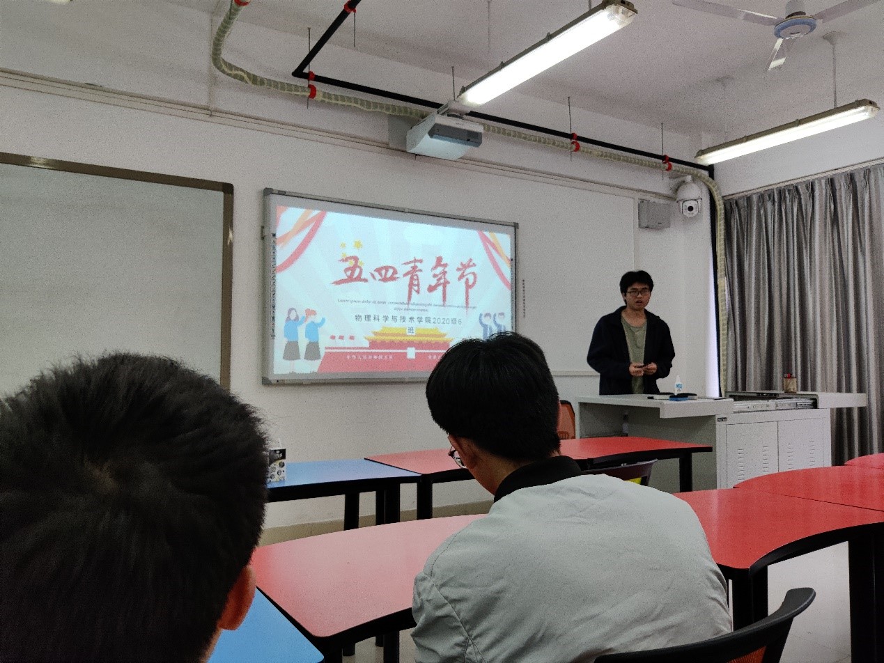 2021年5月5日星期三,太阳成集团tyc122cc2020级应用物理六班团支部于x2123a举行纪念五四运动的主题团日活动。本次活动由团支书吴道帅主持,全体同学共同参与。